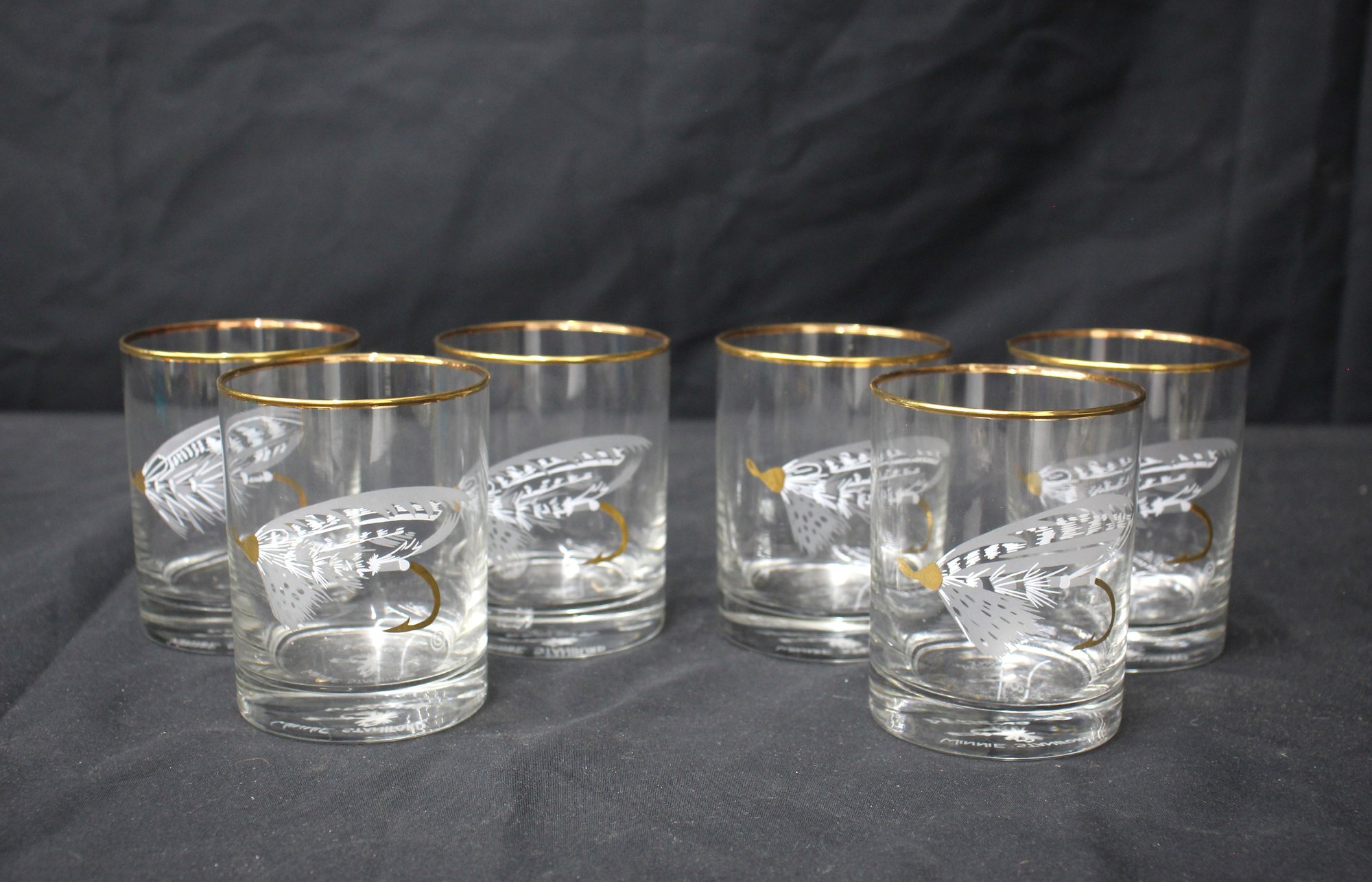 brought to you by the renowned Winne Staniford Designs Inc. Each tumbler showcases a beautifully etched fishing motif, complete with intricate details and accented by elegant gold rims that add a touch of luxury.