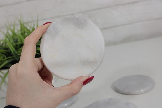 The underside of each coaster is fitted with a cork backing to help protect surfaces from scratches and provide stability. The combination of natural marble and cork makes these both stylish and functional—perfect for everyday use or entertaining guests.