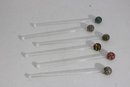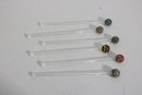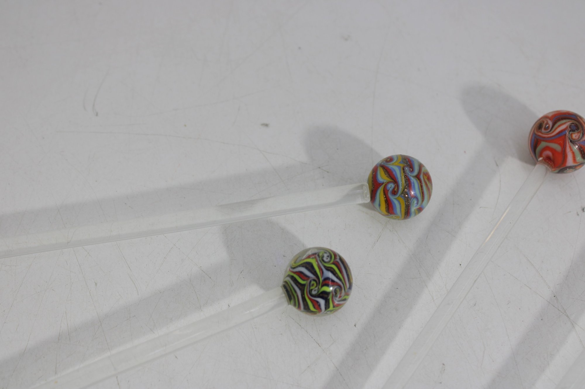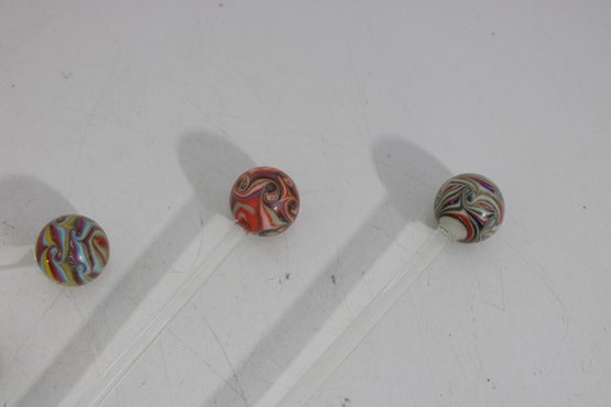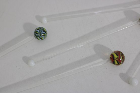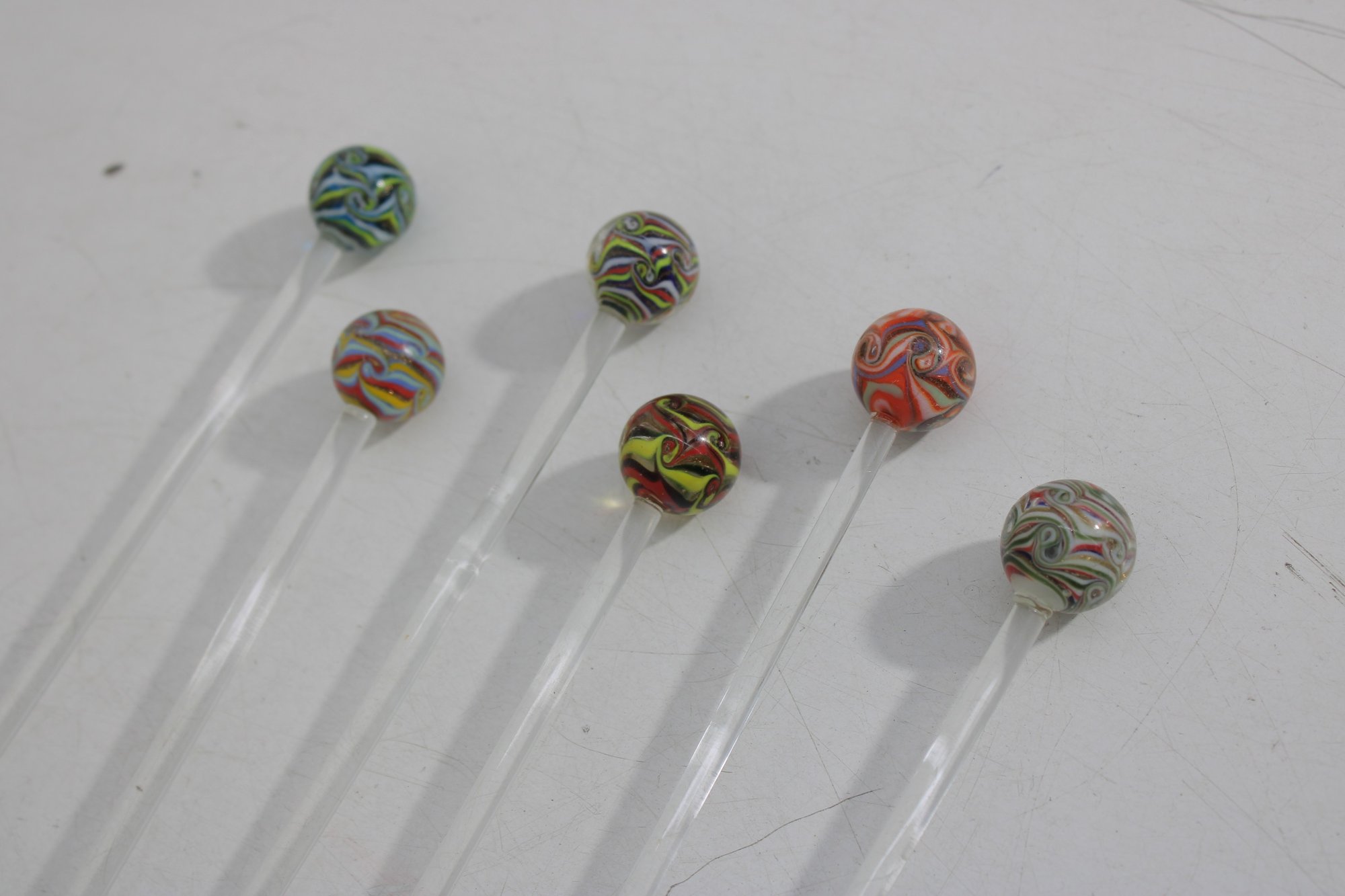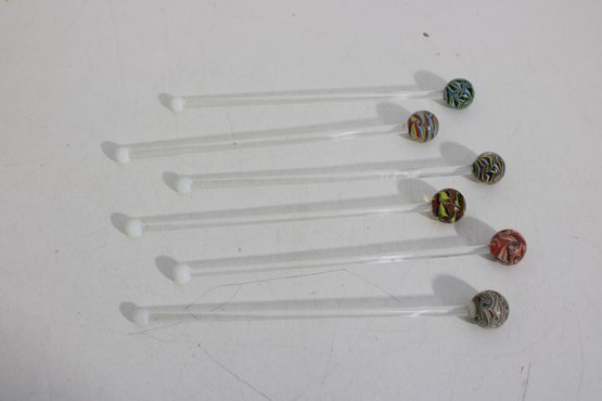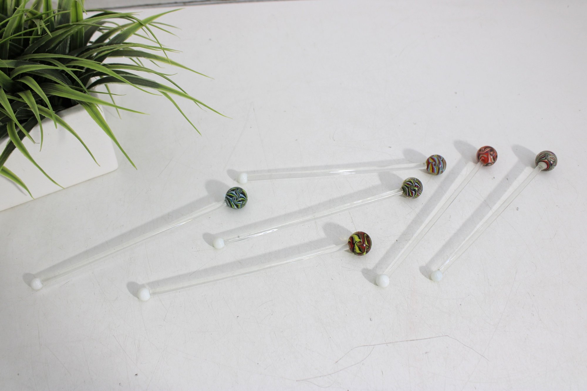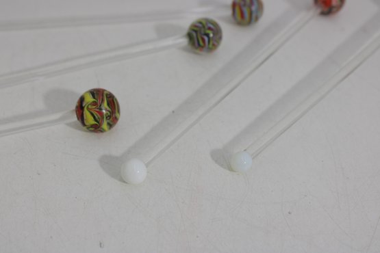 Set Of 7 Hand-Blown Glass Swizzle Sticks Colorful Marble Tops 8 Long