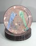 The playful fork and spoon motifs, combined with a vibrant and abstract aesthetic, make these plates a standout in any retro-inspired kitchen or dinner party setting. Marked on the back with the Claudia Reese stamp.