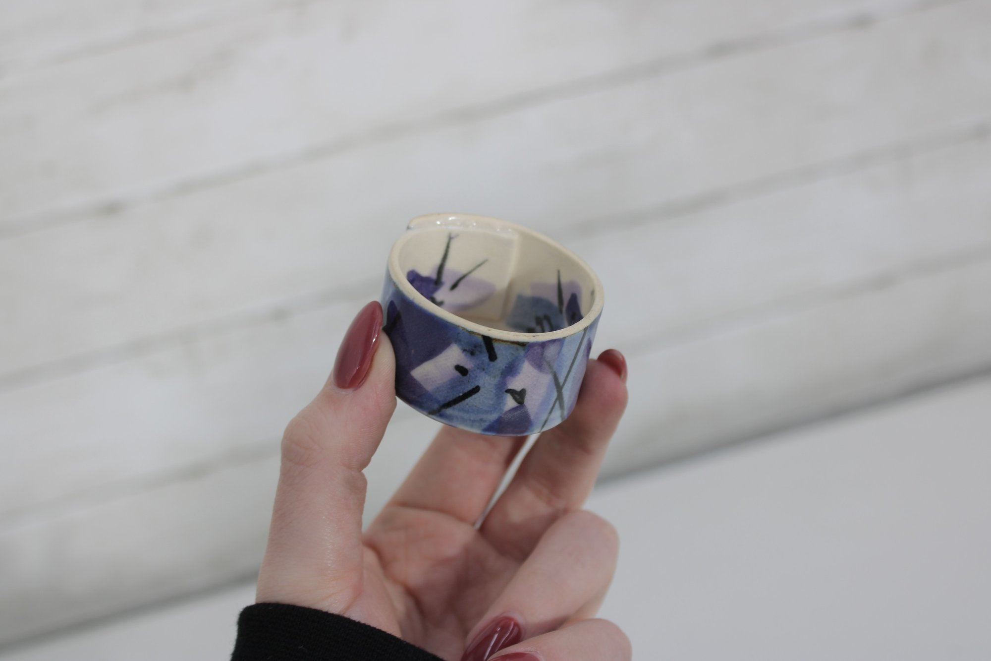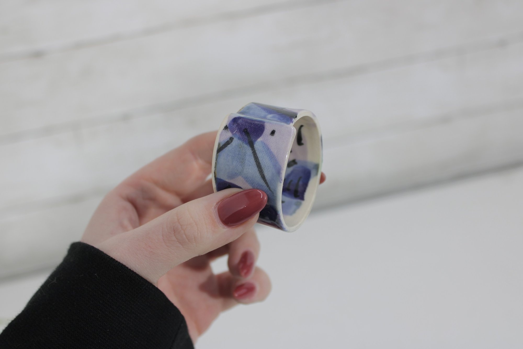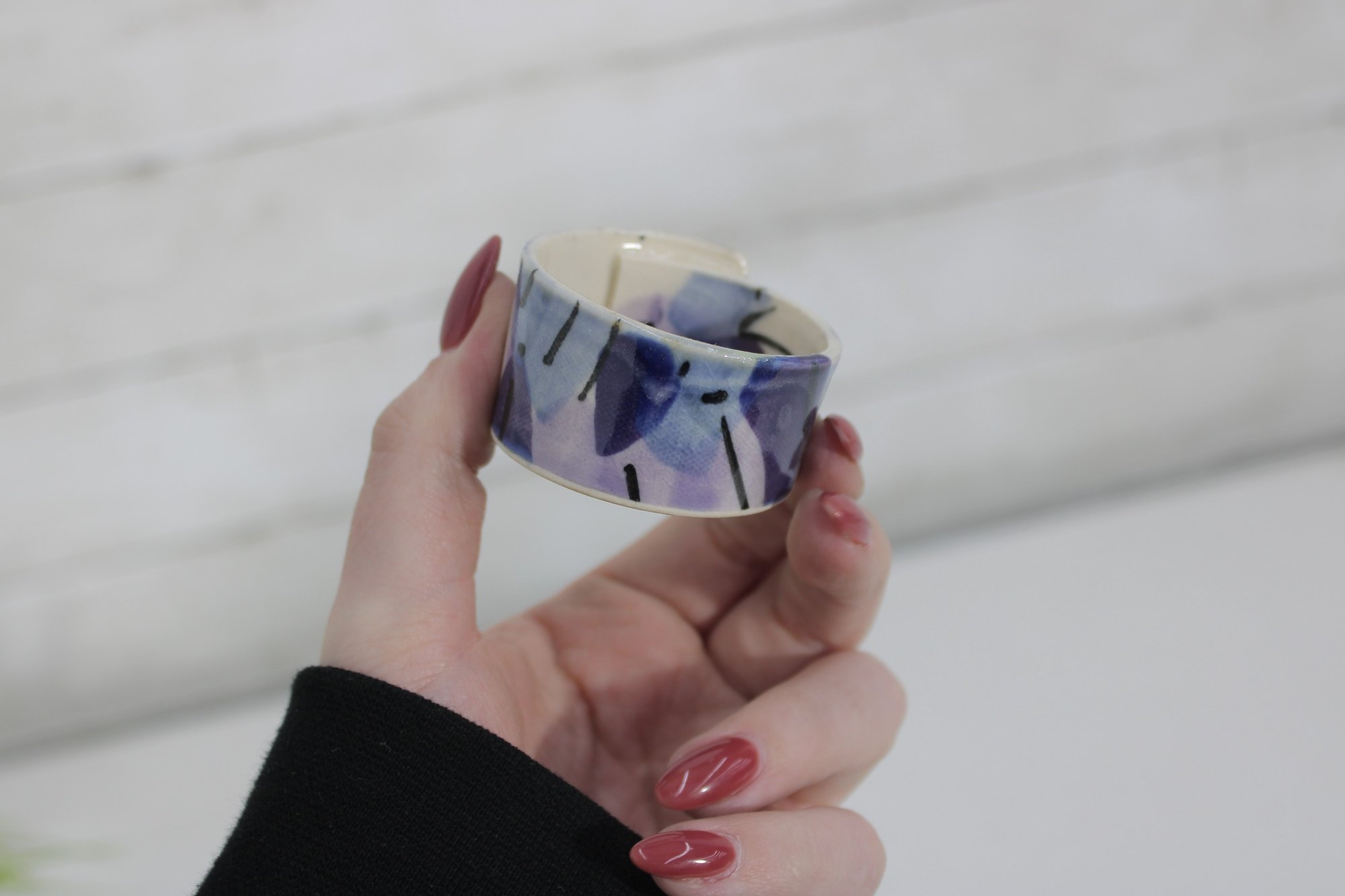 Each ring has a smooth glazed finish with unique variations in the hand-painted design, making every piece slightly different.