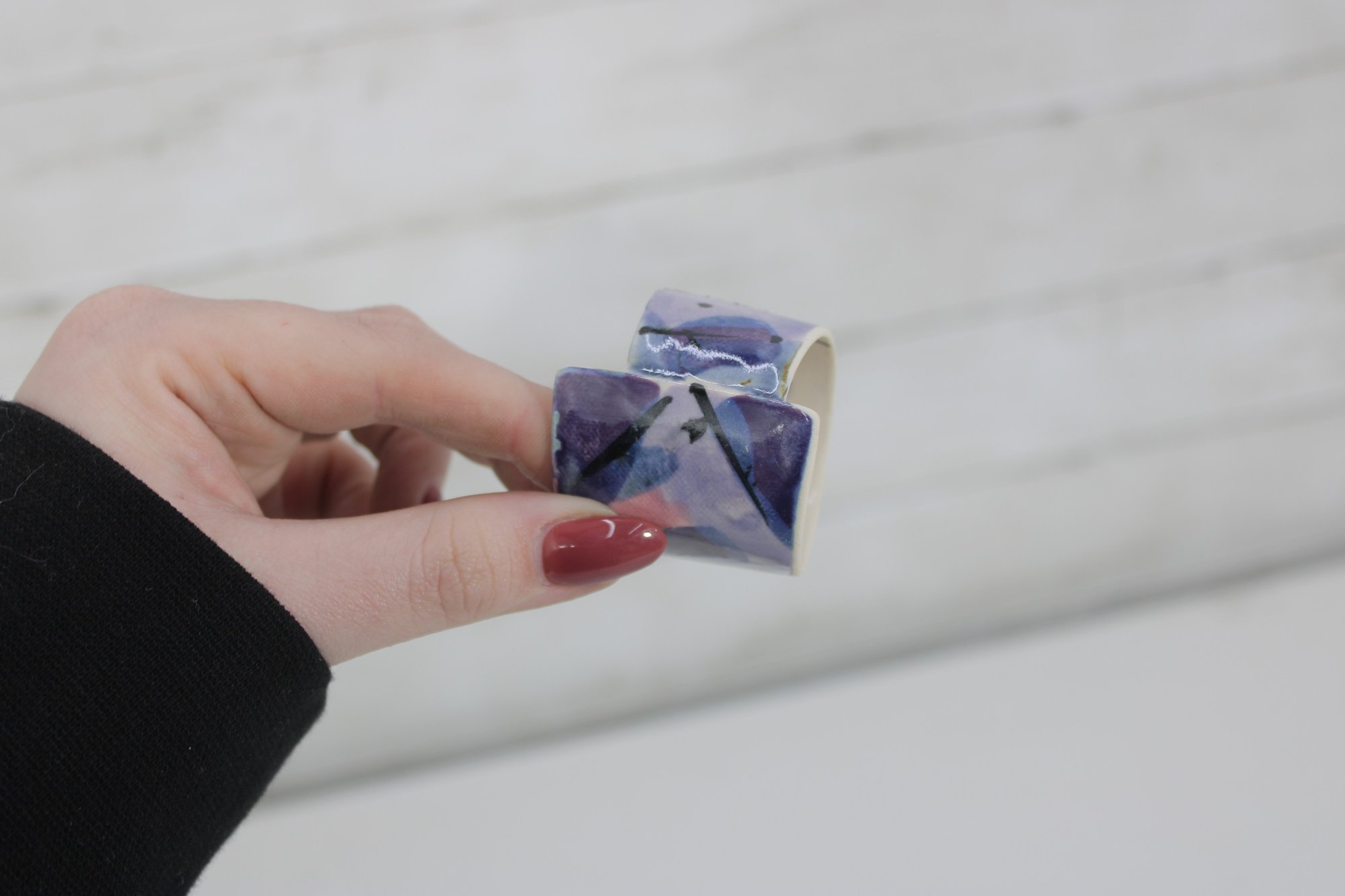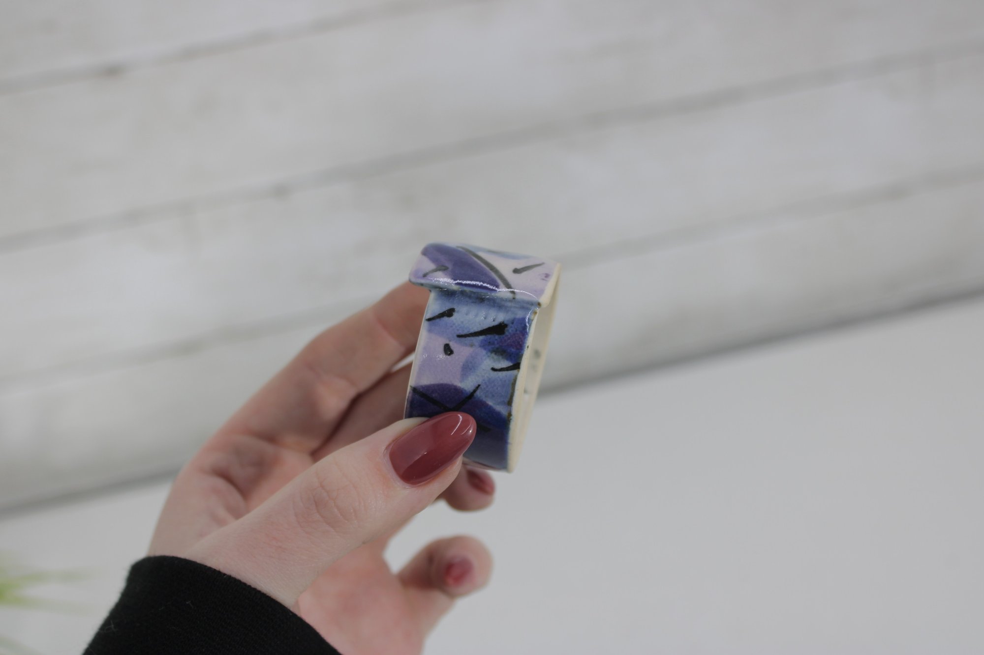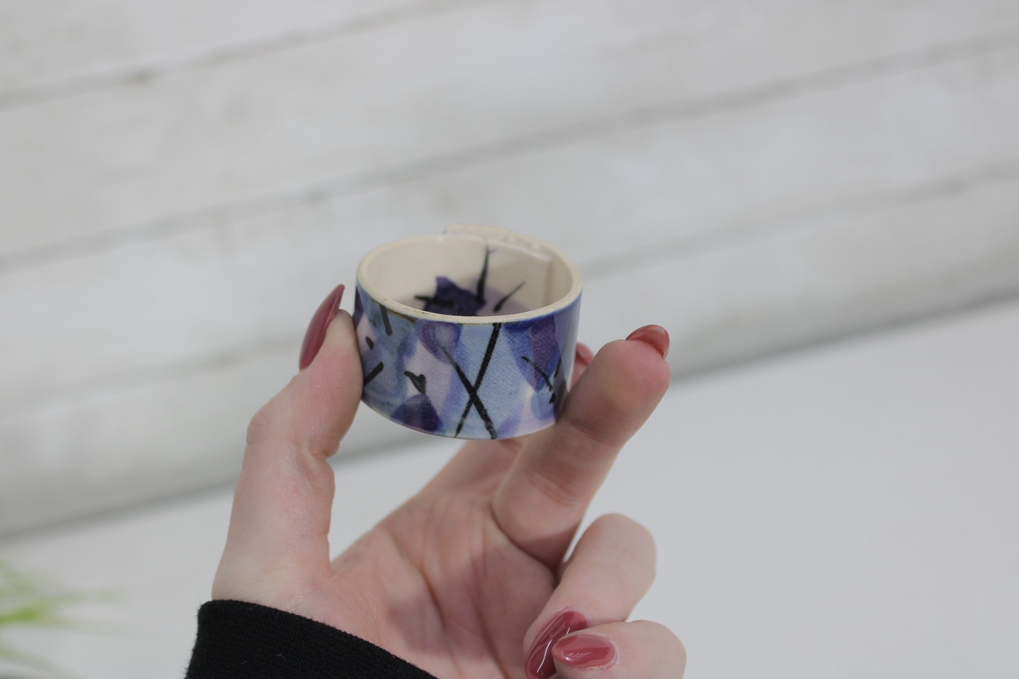 Each ring has a smooth glazed finish with unique variations in the hand-painted design, making every piece slightly different.