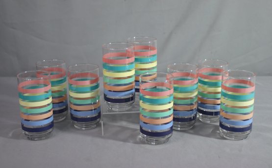 Set Of 9 Libbey Stripe Tumblers Set - Pastel Strips