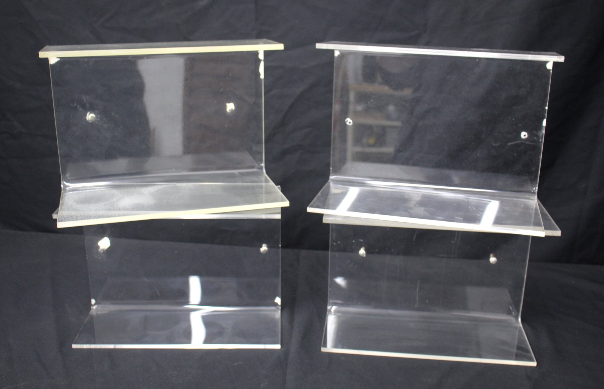 Offering a modern touch to any space, this set of four acrylic wall shelves combines functionality with style. Each shelf features a clear, polished finish with sturdy metal mounts for a floating appearance. Ideal for displaying collectibles or organizing essentials, these shelves provide a sleek, minimalist look while maximizing your vertical space.