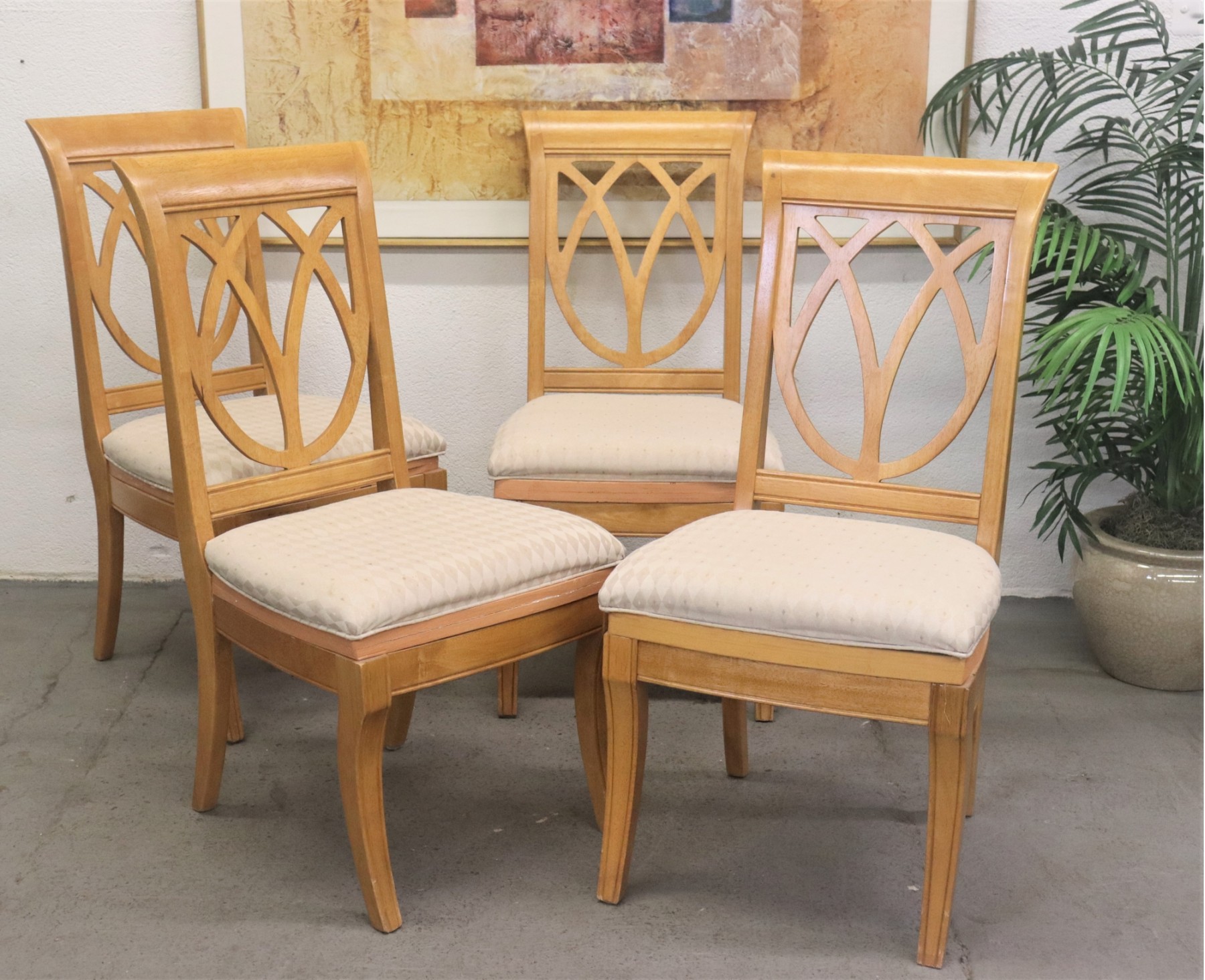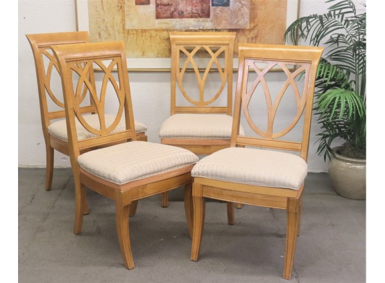 Set Of Four Flared Trellis Shield Back Dining Chairs