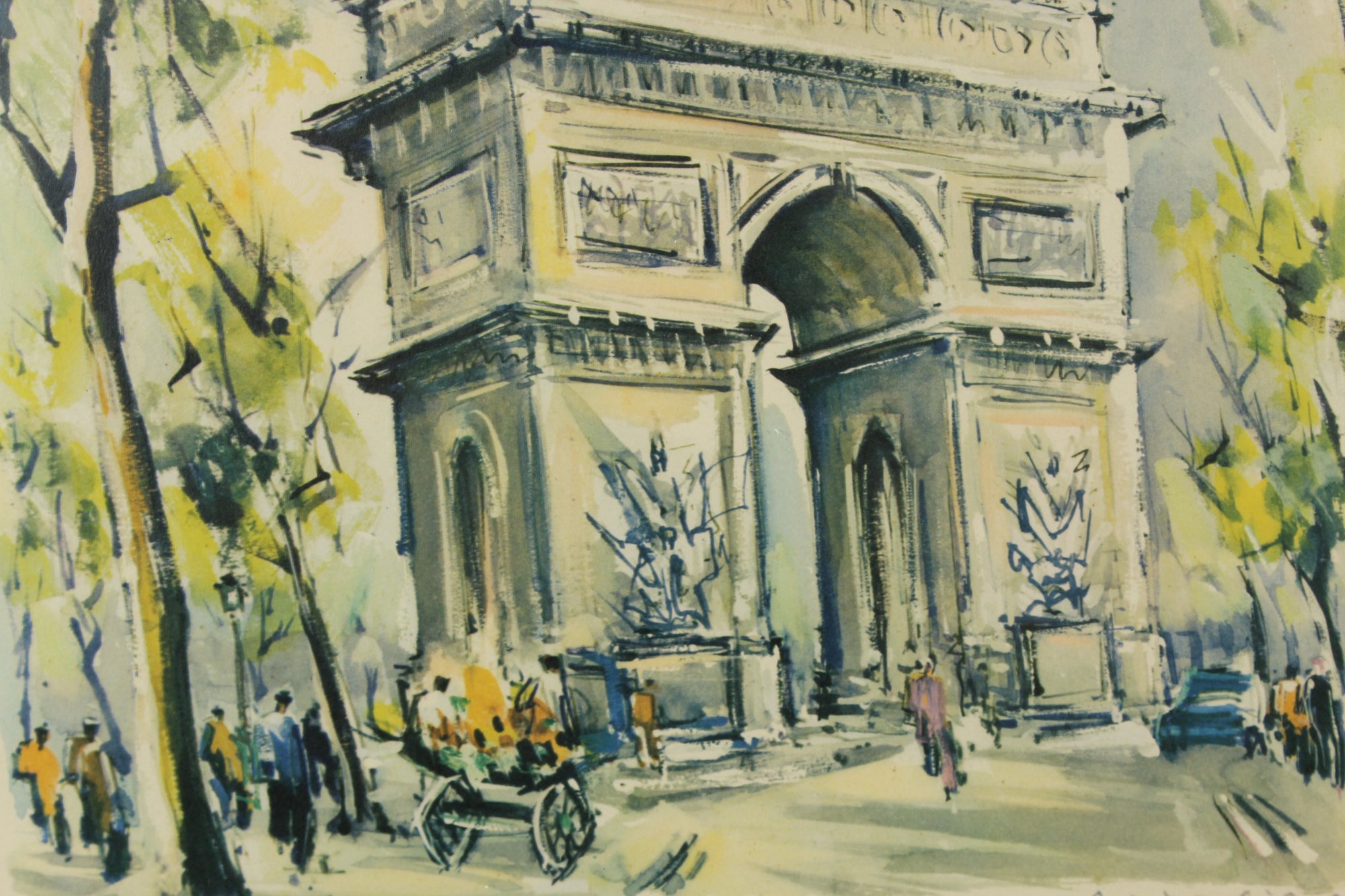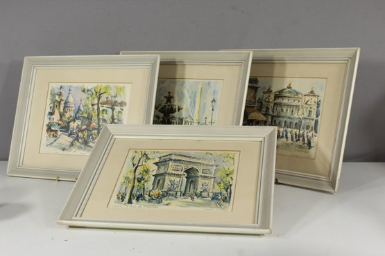 This delightful set of four Parisian watercolor prints, signed by Martine Girard, beautifully captures iconic landmarks and scenes of Paris, including the Arc de Triomphe and other architectural and urban vistas. Rendered in a lively and expressive style, these prints evoke the charm and vibrancy of the City of Light.
