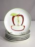 This delightful set of plates features a vibrant apple design, showcasing both a cross-section and whole apple with a green trim around the edges. The back of each plate includes a charming definition of "Apple," adding a whimsical touch. Perfect for adding a splash of color and character to your dining table.