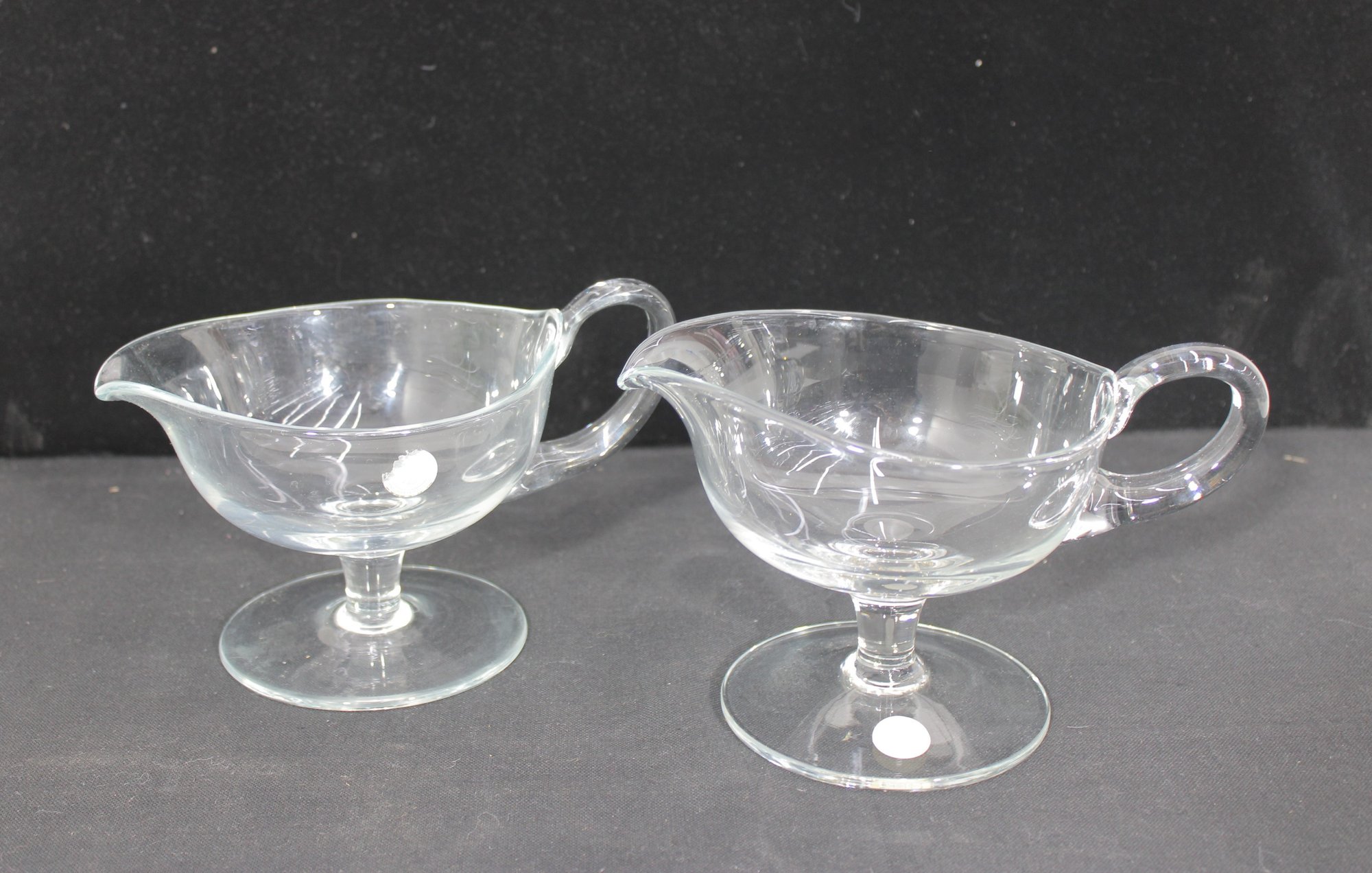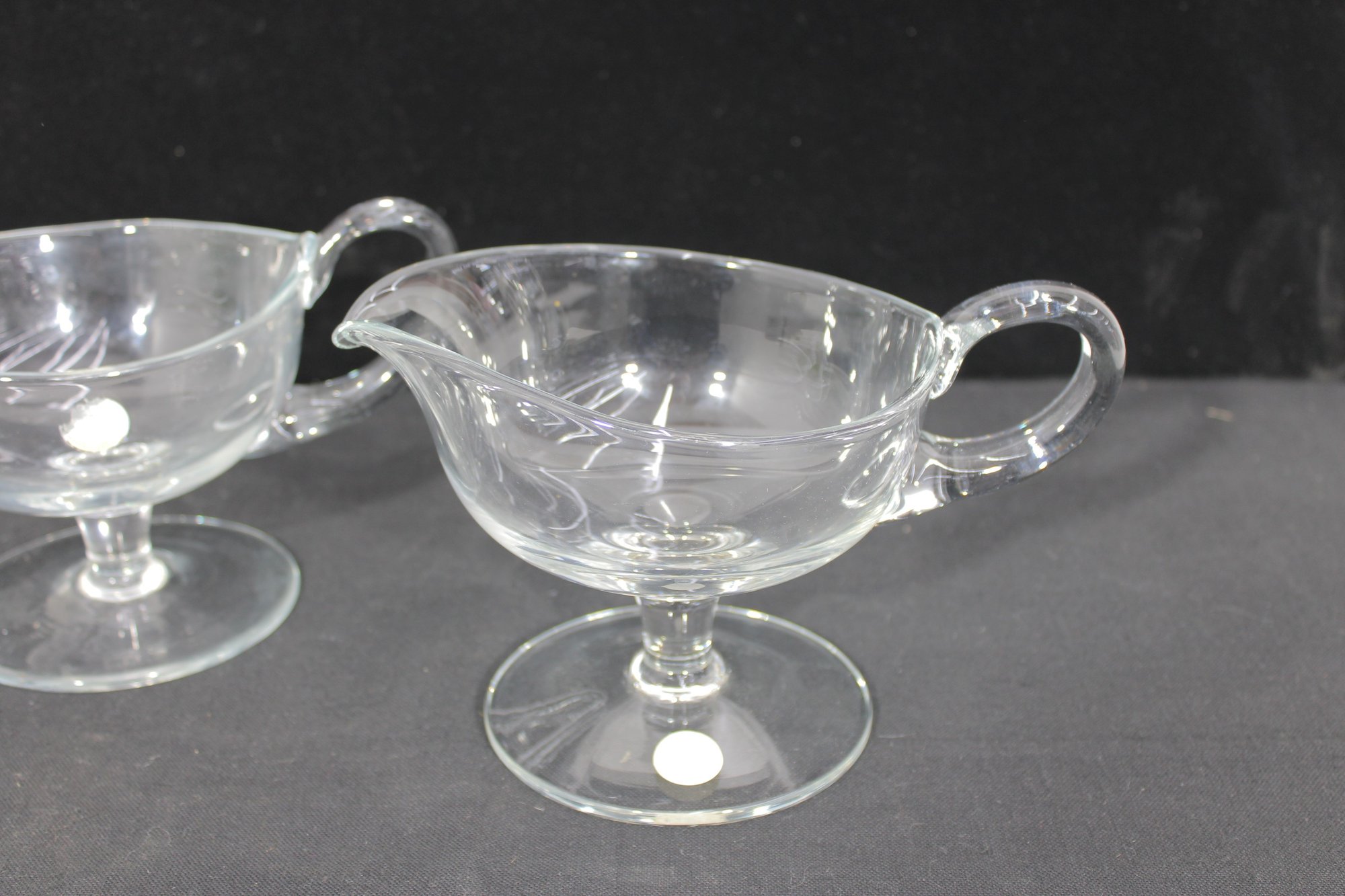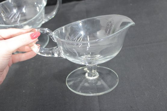 These versatile pieces can be used as gravy boats, sauce servers, or even small dessert or berry bowls. The pedestal base and etched detailing give them a refined, classic look suitable for both everyday dining and formal entertaining.