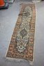 The Vintage Persian Runner is long and features a detailed floral and geometric pattern in vibrant earth tones.