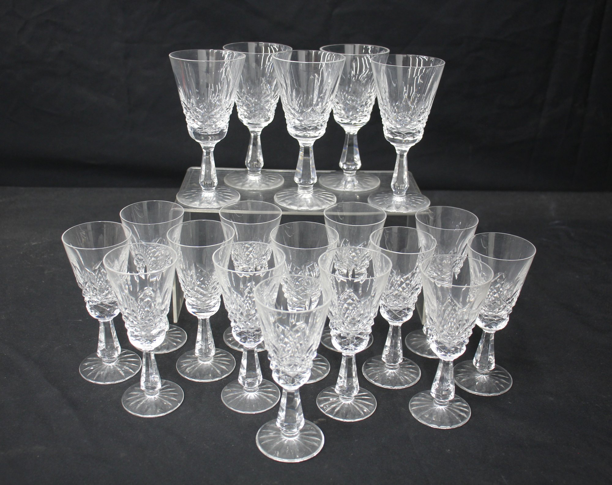 This exquisite set of Waterford crystal wine glasses features a beautiful cut design, showcasing the brand’s renowned craftsmanship and timeless elegance. Each glass is carefully crafted with intricate cuts that catch and reflect light beautifully. The set includes a total of [specify number] glasses, perfect for formal gatherings or adding a touch of luxury to your home.