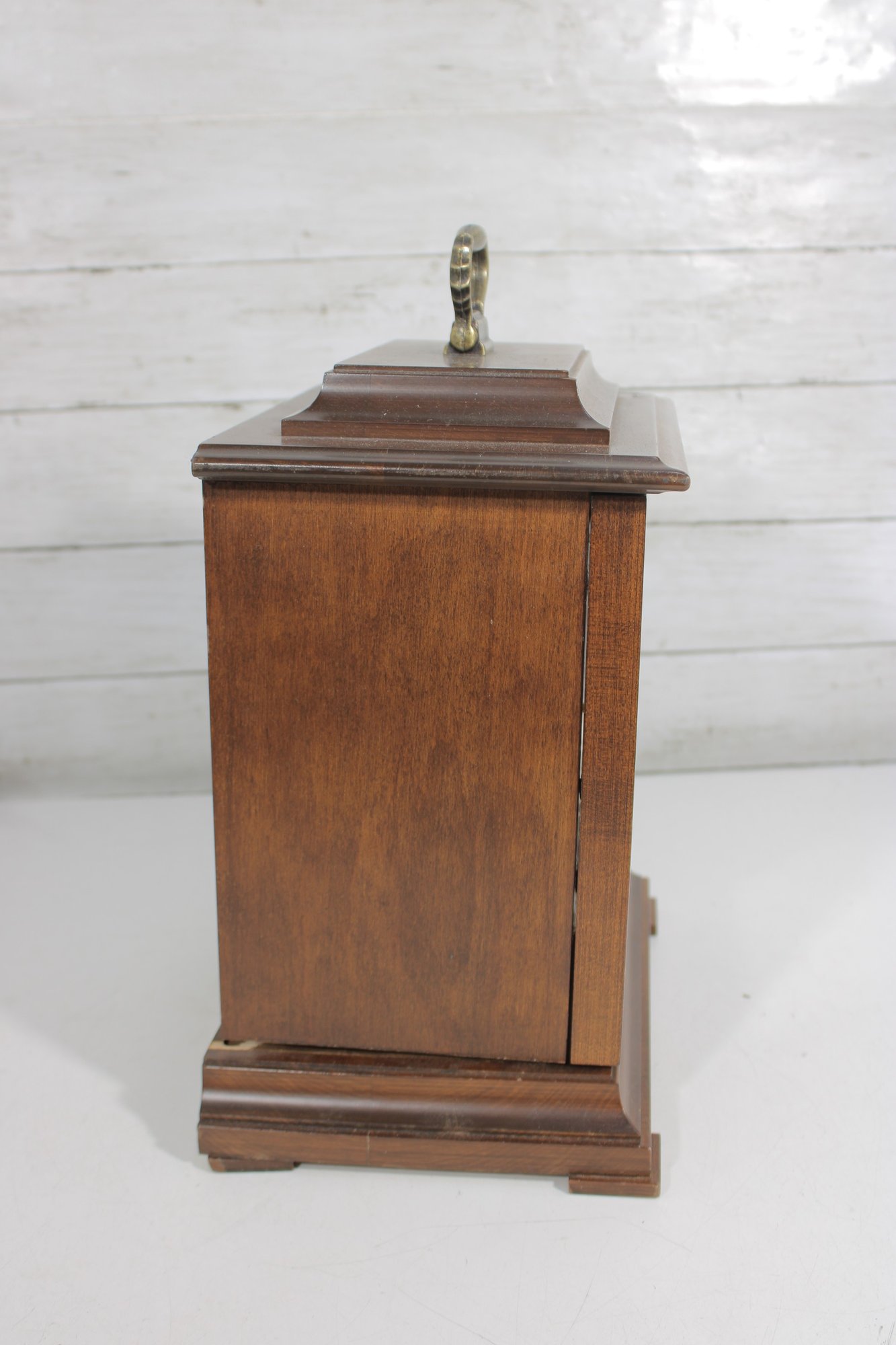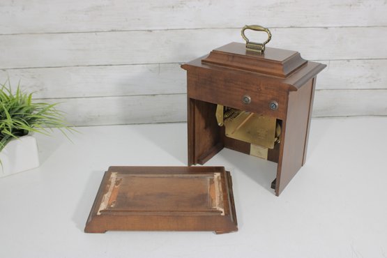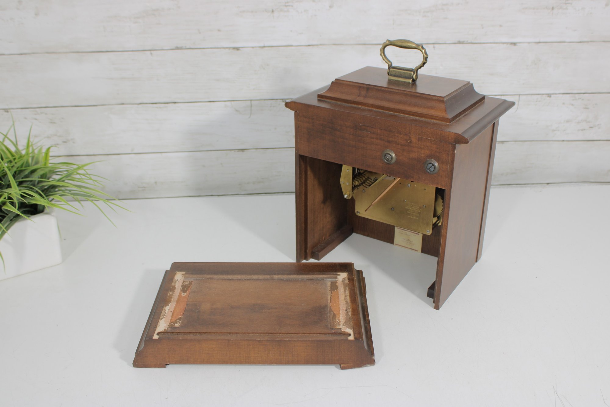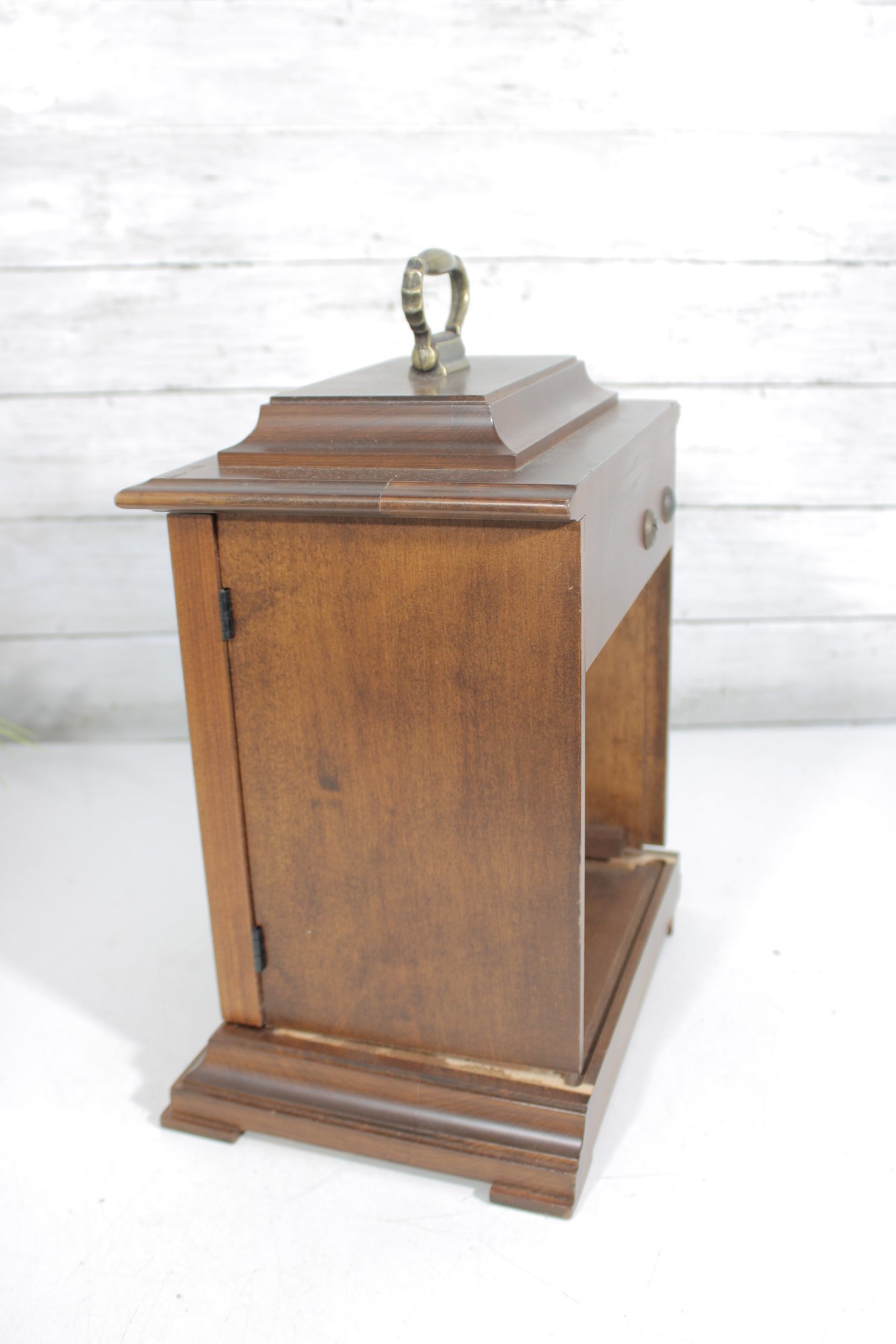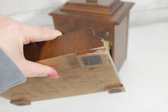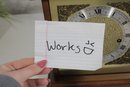 Good overall condition with wear consistent with age and use. Notable cosmetic wear includes some damage and wear to the bottom base panel (see photos). The clock is currently functioning; however, it may benefit from servicing for optimal long-term performance.