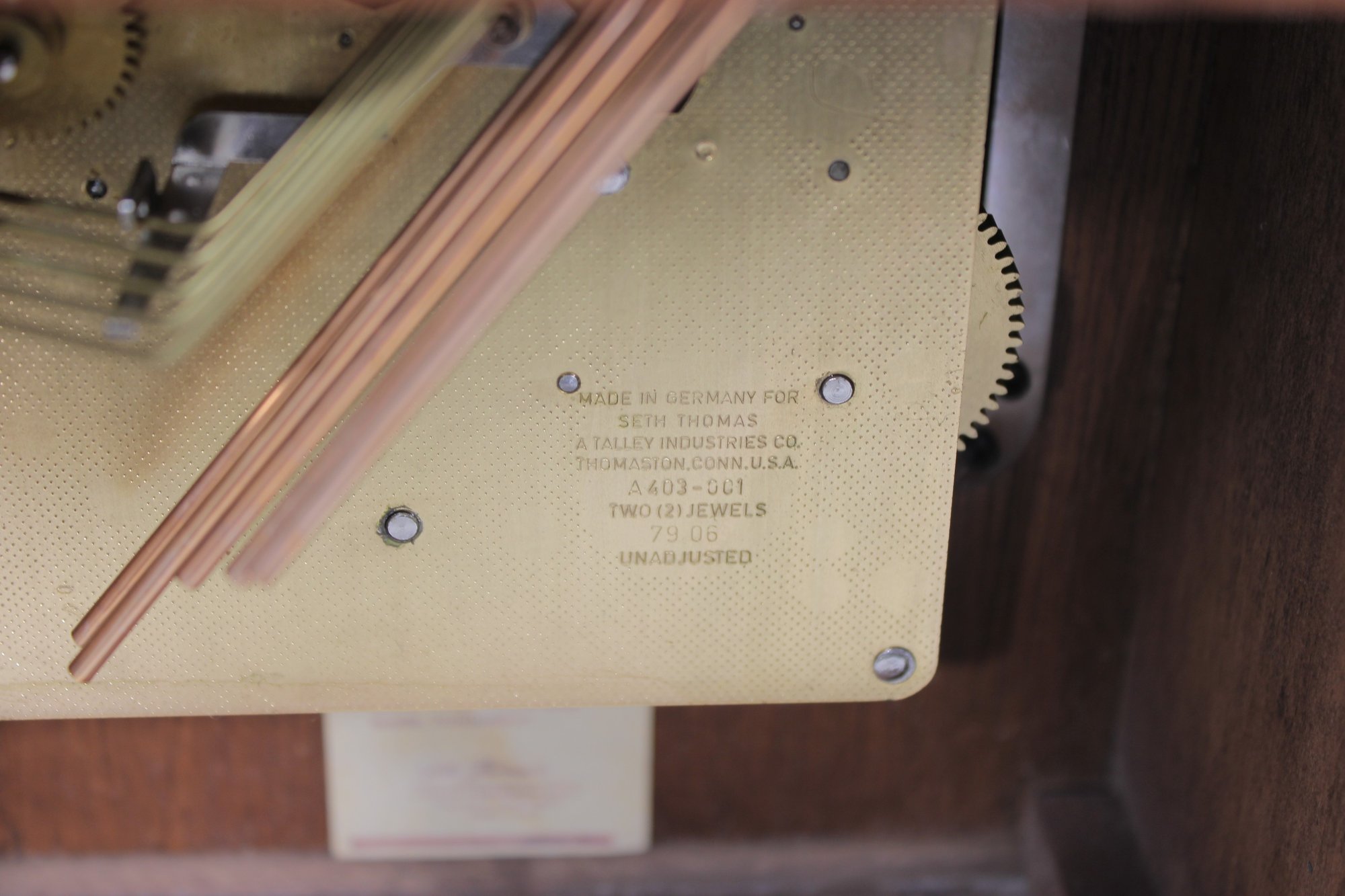The interior reveals a quality movement marked Made in Germany, further highlighting its craftsmanship. The clock has been tested and is in working condition.