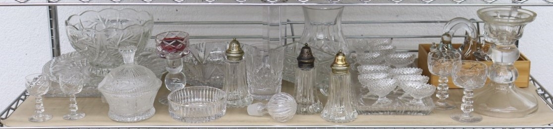 Shelf Lot Of Cut Glass And Crystal Tabletop Items And Animal Figurines