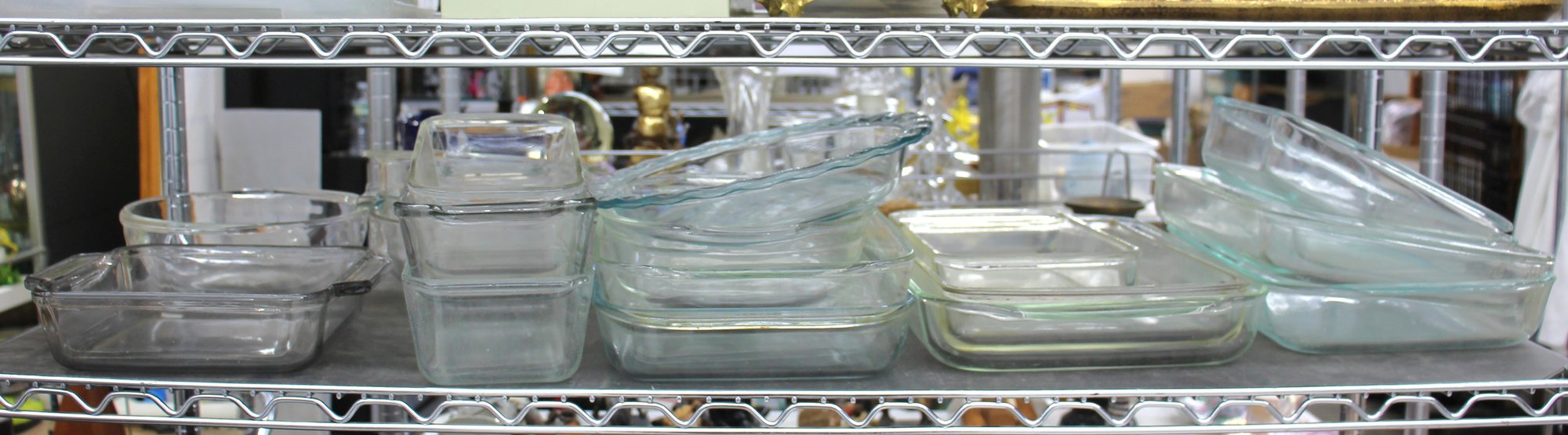 Shelf Lot Of Pyrex Clear Glass Baking Ware
