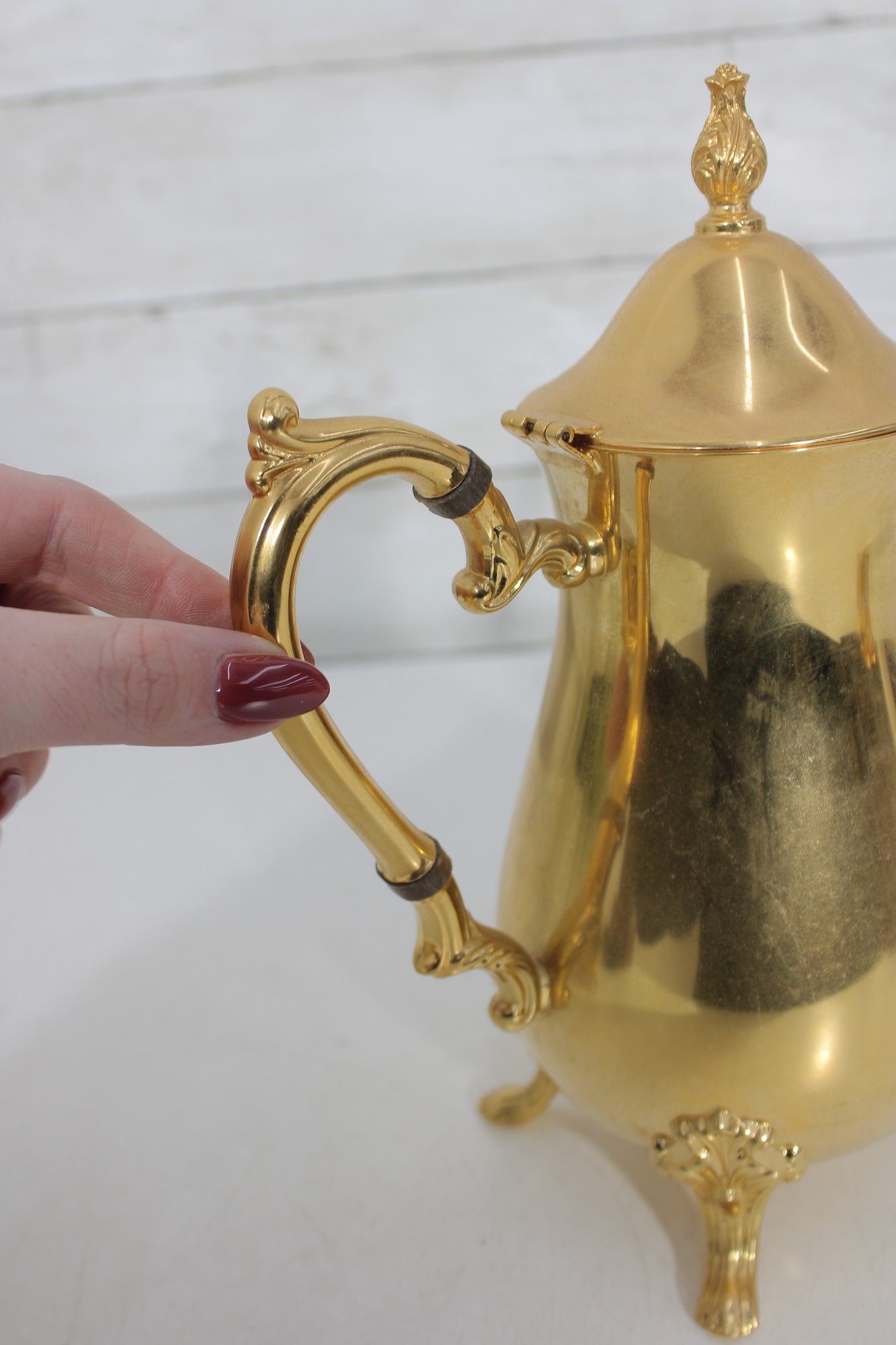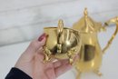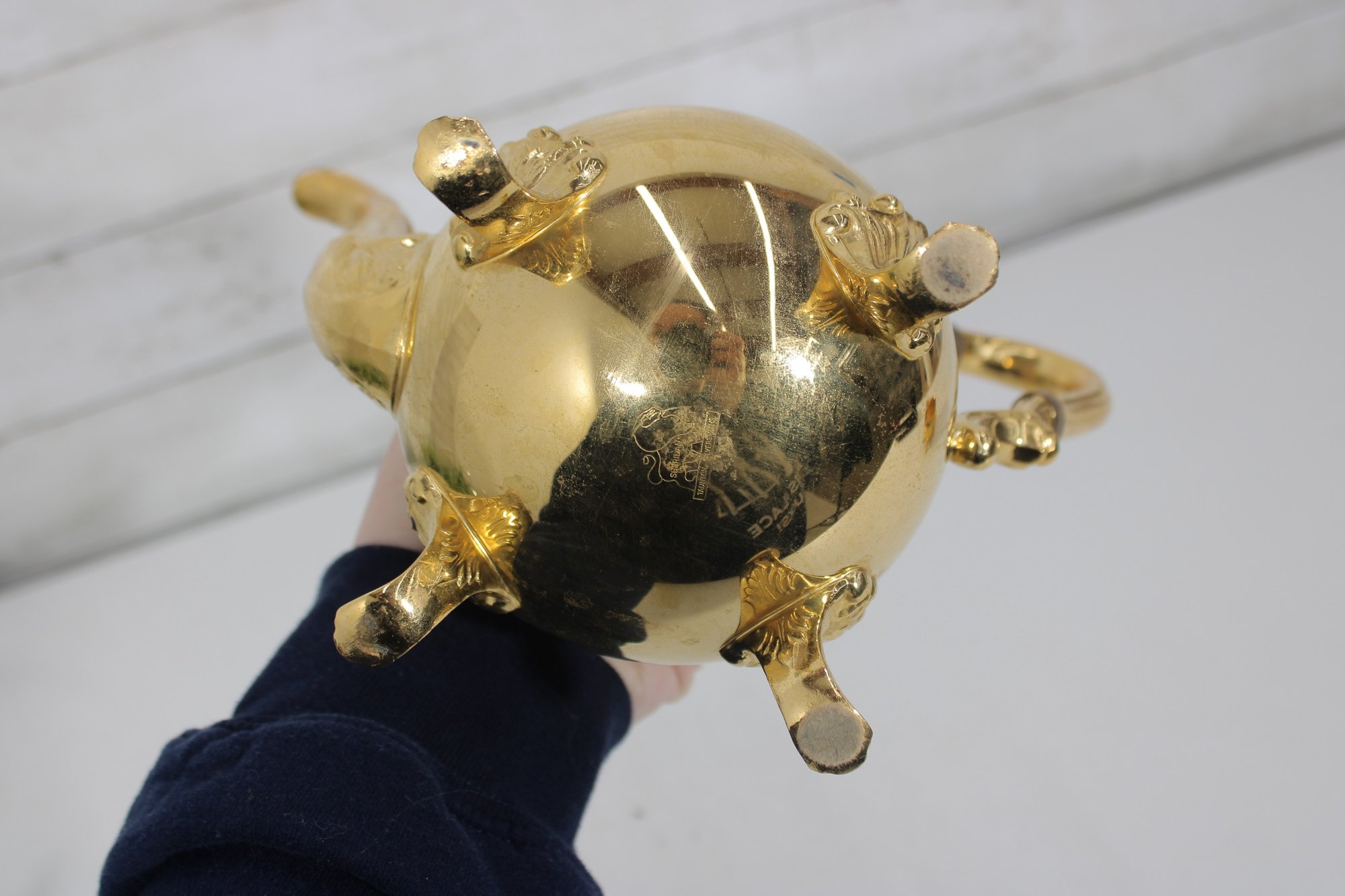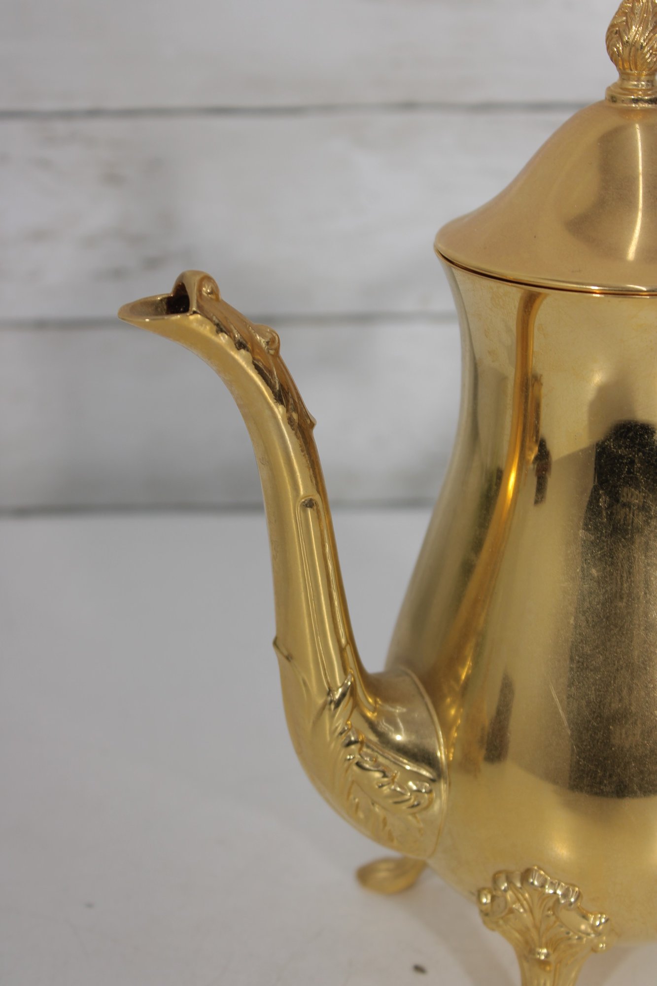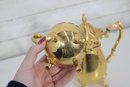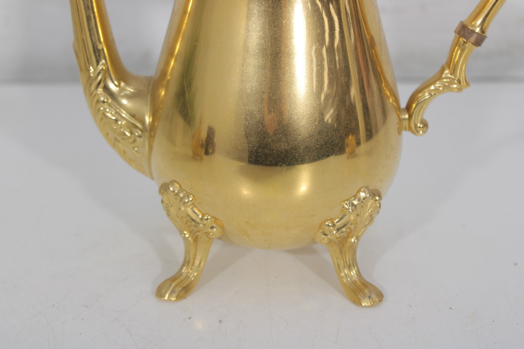 The polished gold tone surface reflects beautifully and makes this set perfect for entertaining, display in a china cabinet, or as a decorative accent. Marked Sheridan on the underside, known for producing quality silverplate hollowware.