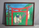Mixed media on paper, The painting captures a family in traditional attire at a Shichi-Go-San ceremony, an important celebration marking the growth of children in Japan.