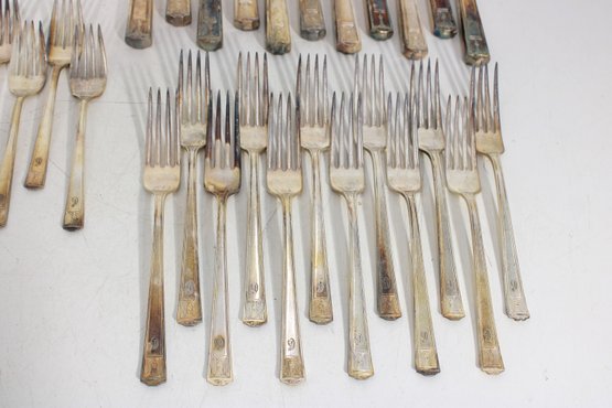 The lot includes multiple dinner knives marked Insico Stainless, along with assorted forks and spoons in coordinating patterns. A great opportunity to expand a current service, replace missing pieces, or use for entertaining.