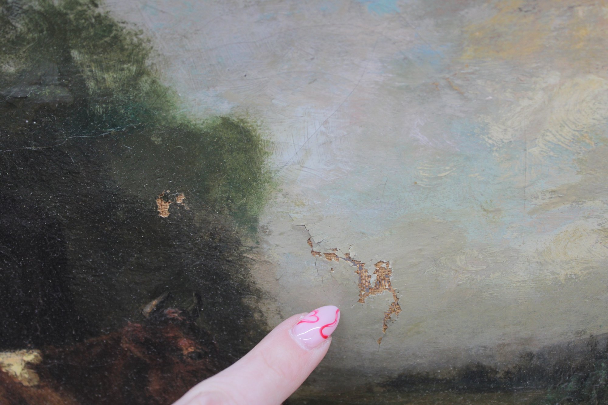**Areas of surface wear and scattered paint loss, most visible in the sky (see photos)