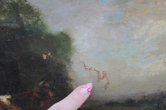 Frame shows age-related wear, losses, and patina