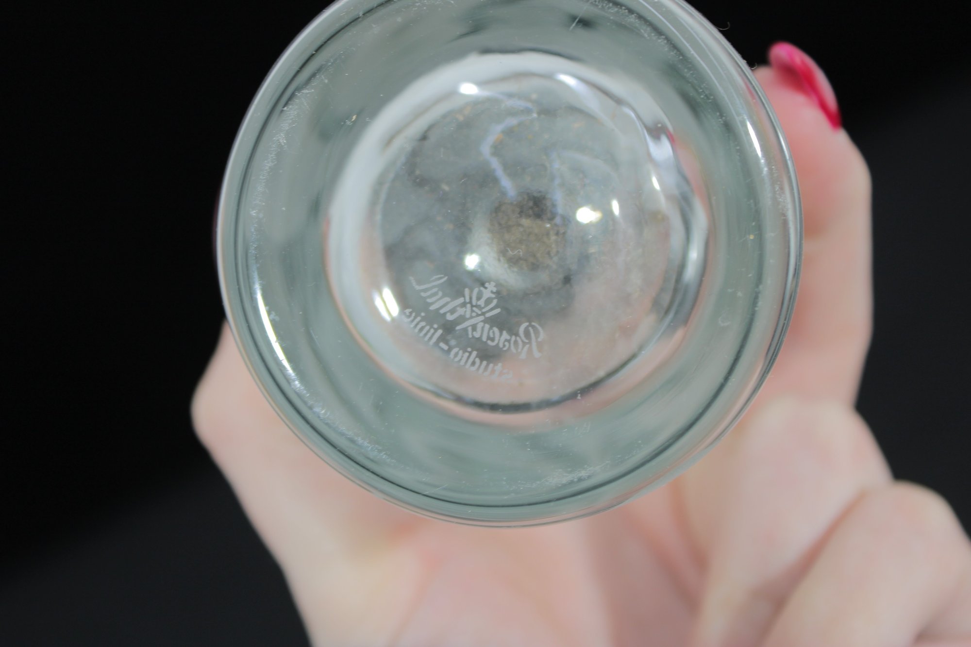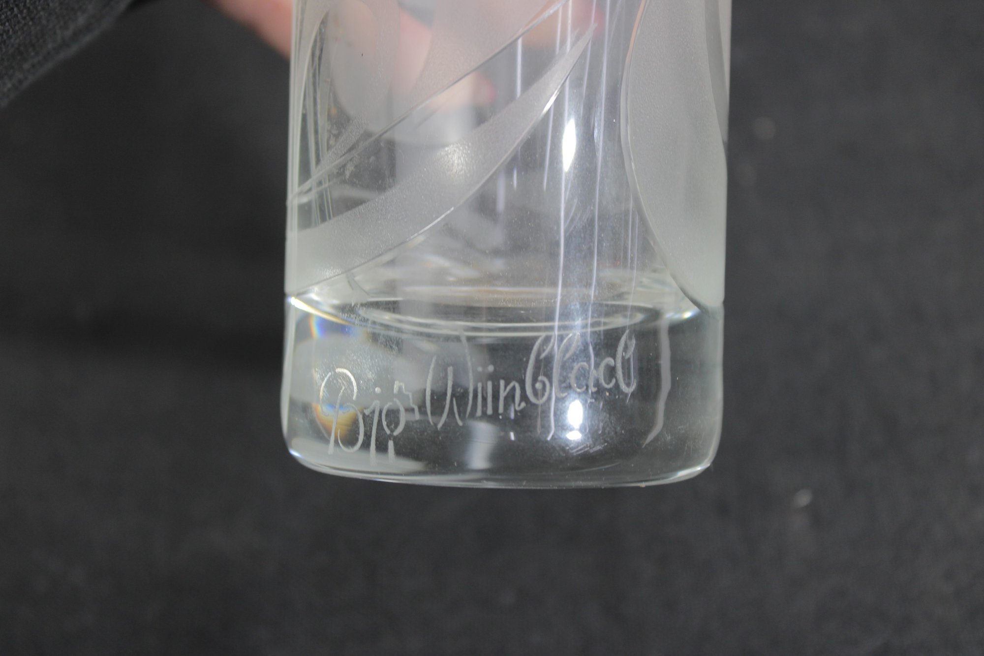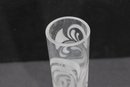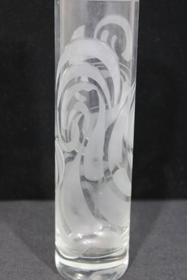 This piece stands approximately 9.5 inches tall and showcases the refined, artistic style Wiinblad is known for—combining modern Scandinavian design with graceful decorative elements. The swirling etched motif adds movement and sophistication while maintaining a clean, minimalist aesthetic.