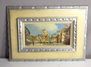 his signed oil painting features a charming cityscape scene, framed in an ornate silver frame. The intricate brushwork and bright colors bring the city to life, making it a great addition to any art collection.