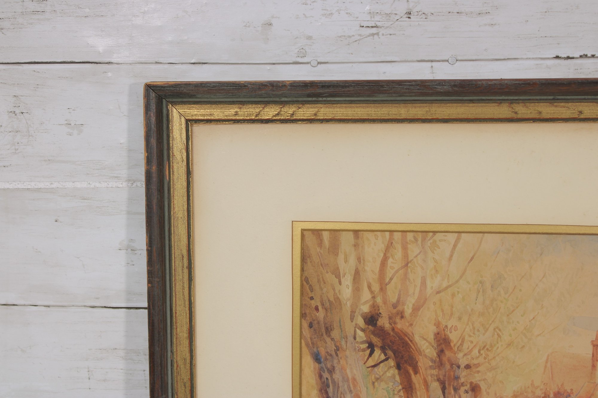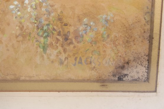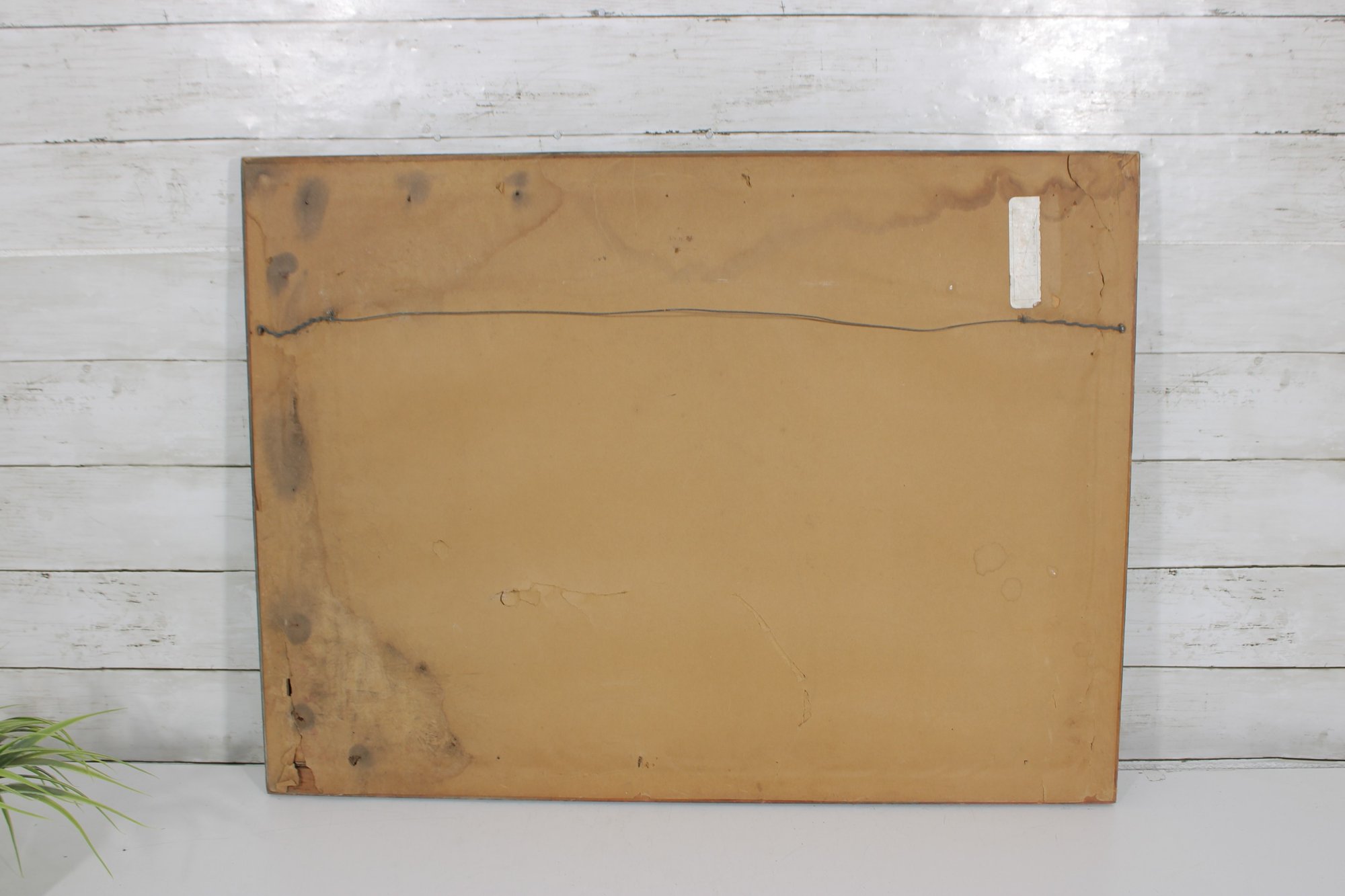 The artwork is signed in the lower corner (appears to read JACGUN / similar – please review photos for exact signature). The piece is professionally framed with a decorative frame and matting that complements the warm tones of the image.