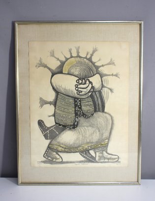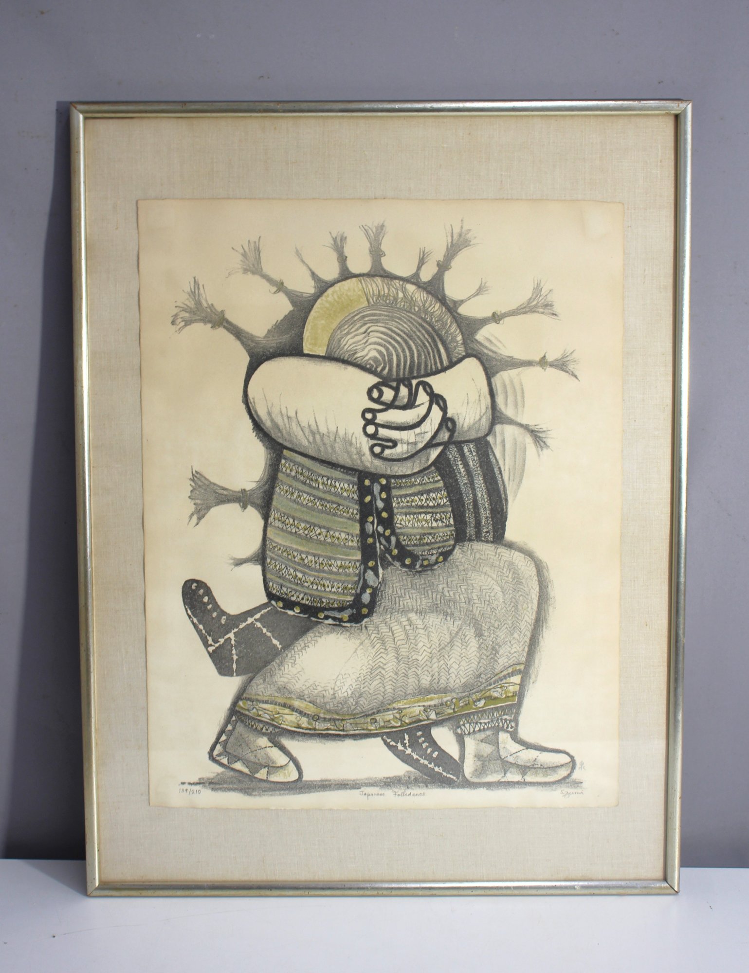 Limited edition print "Japanese Folkdance" signed by artist S. Izumi, numbered 139/210. A highly detailed depiction of traditional Japanese attire with intricate shading and texture. A fantastic collector’s piece with an expressive style.