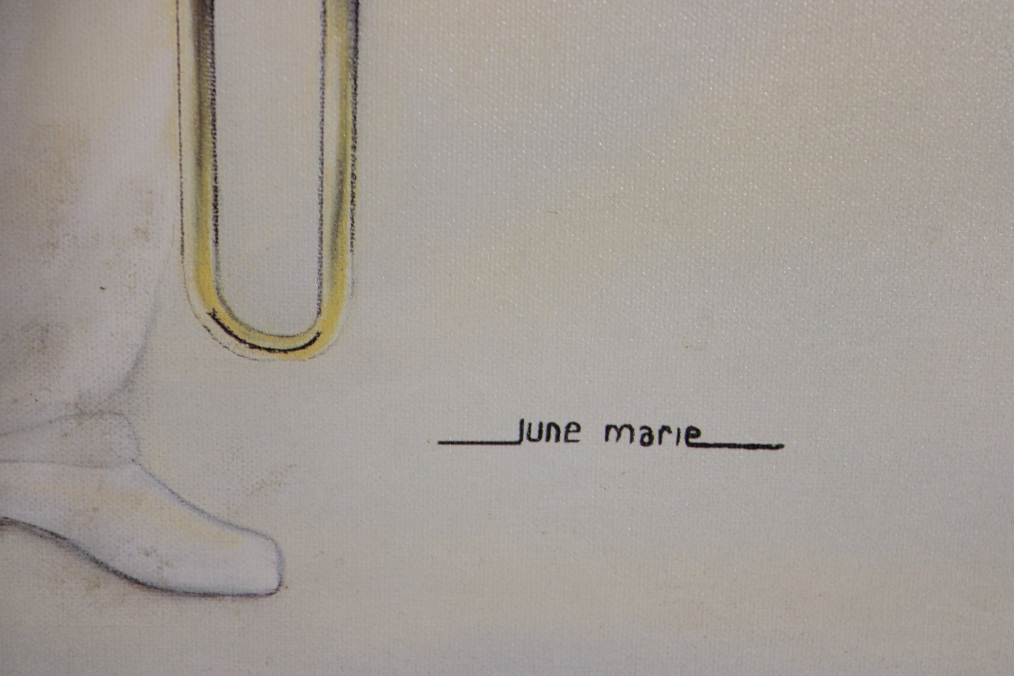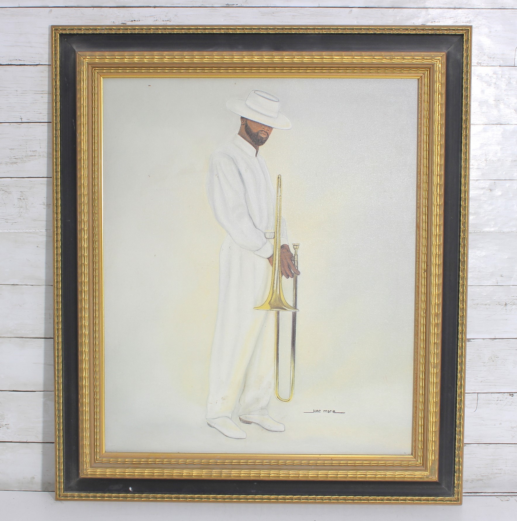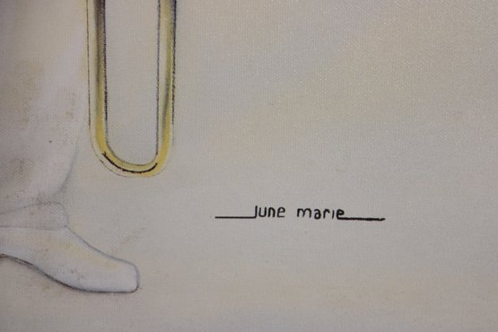 Signed “June Marie” in the lower area, this framed piece offers a clean modern presentation that works beautifully in music rooms, lounges, offices, or gallery-style interiors.