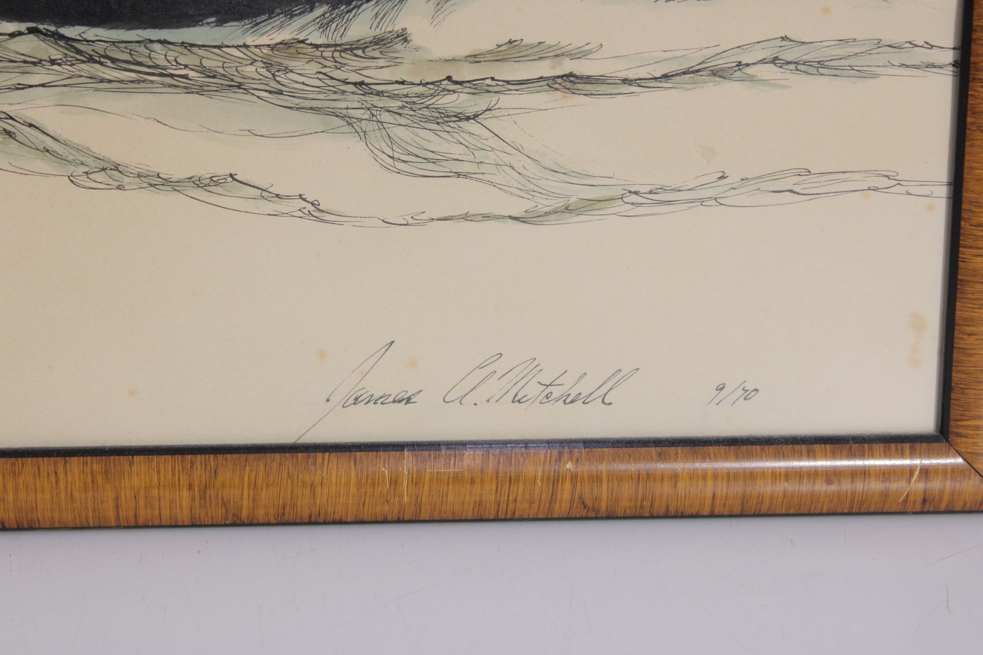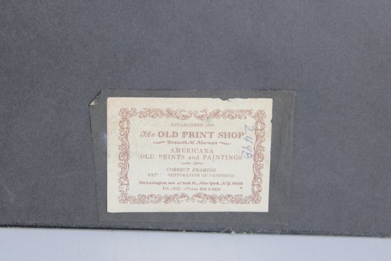 This piece is hand-signed and numbered 9/70 in pencil along the lower margin (see photos), adding to its collectible appeal. Additional printed titling and publication details are visible beneath the image, and a gallery label from “The Old Print Shop” is affixed on the reverse.