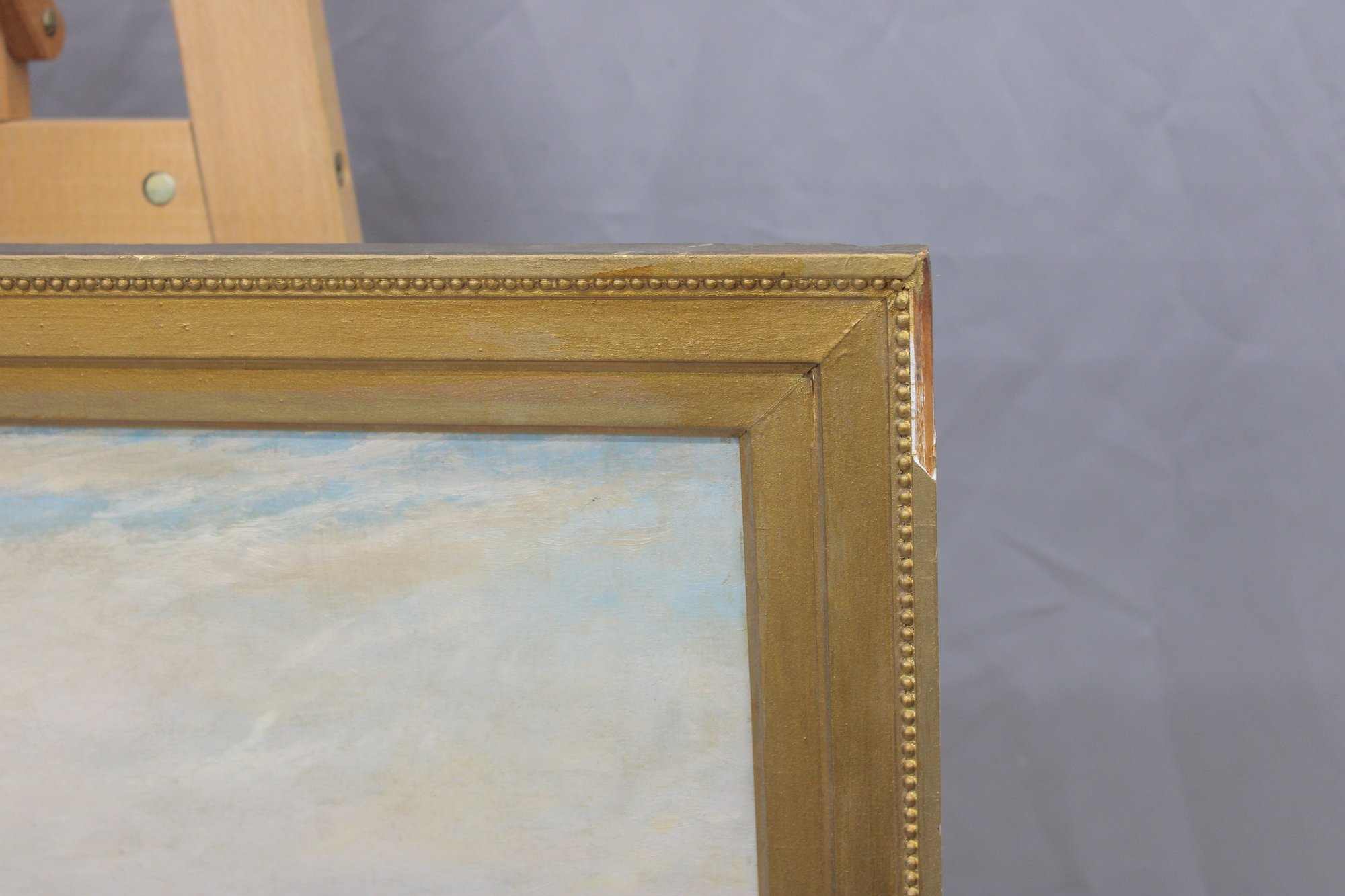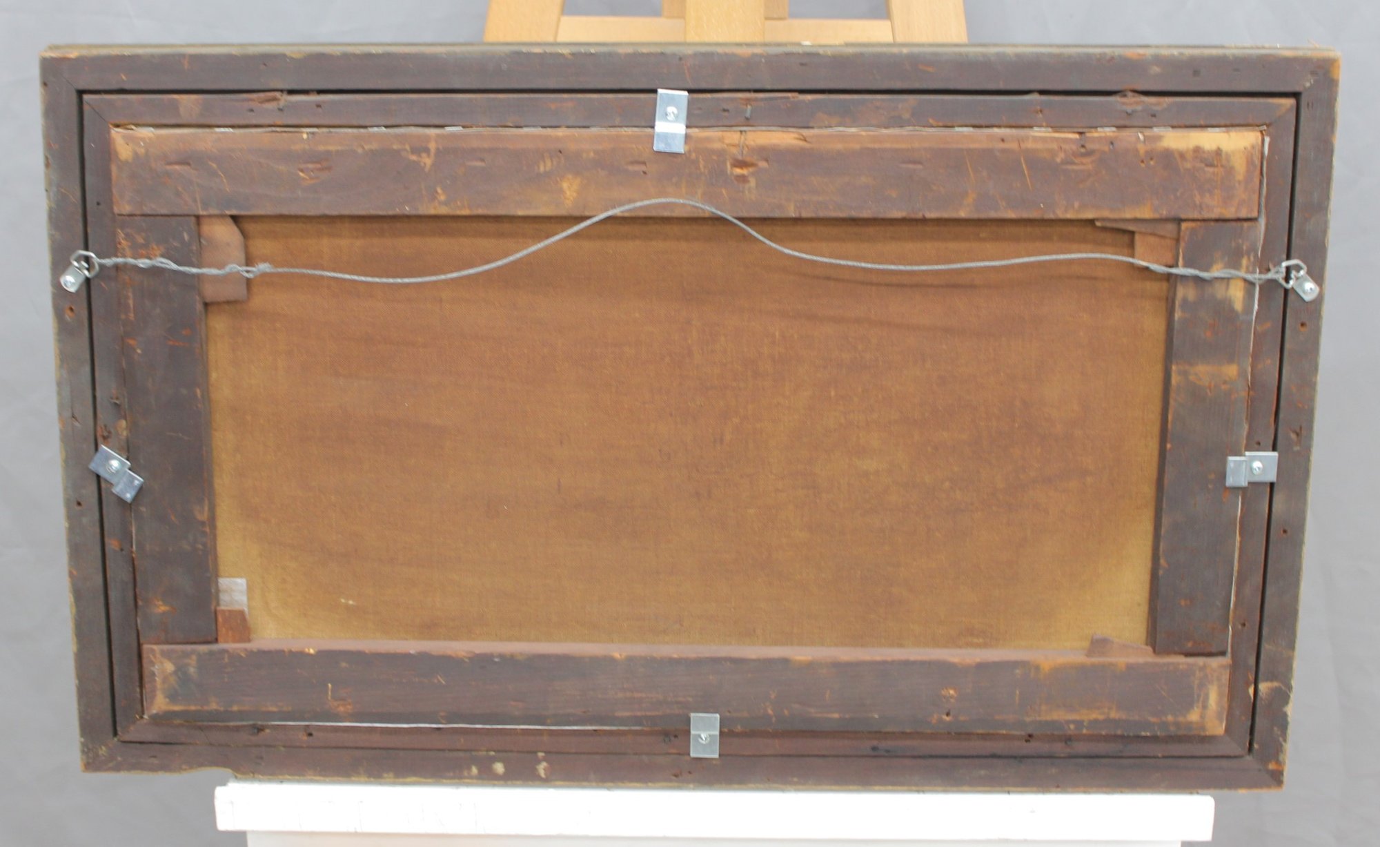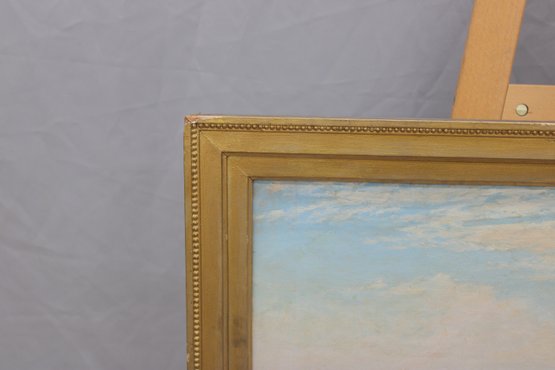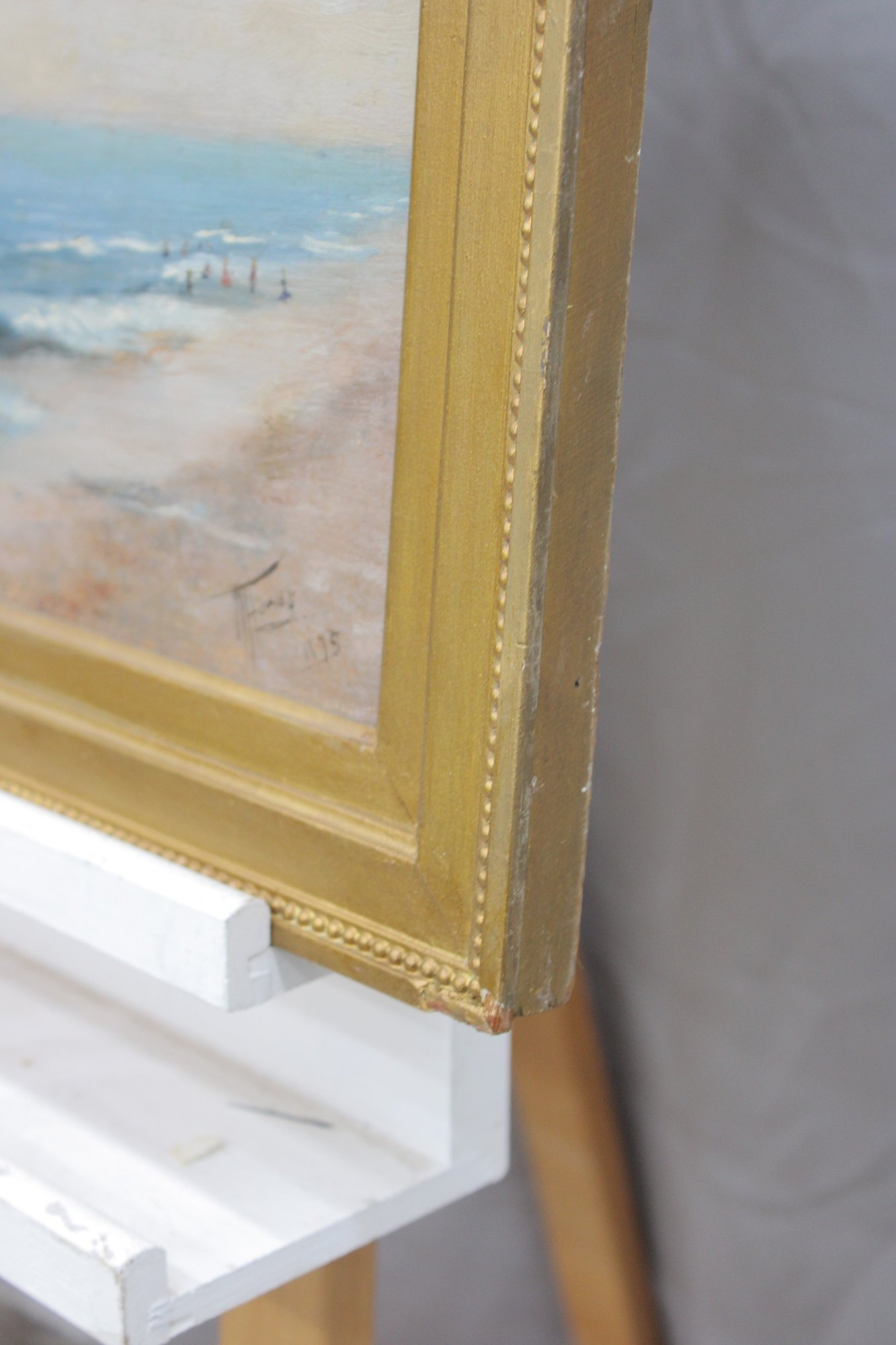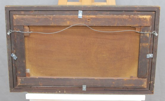 The painting is signed and dated “1935” at the lower right (signature visible; attribution unverified) and is housed in a simple gilt wood frame that complements the elongated horizontal format.