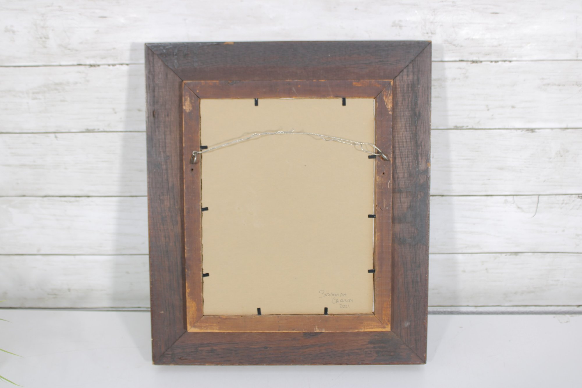 The artwork is presented in an attractive wood frame with a gilt inner border, enhancing its refined appearance and making it ready to display.