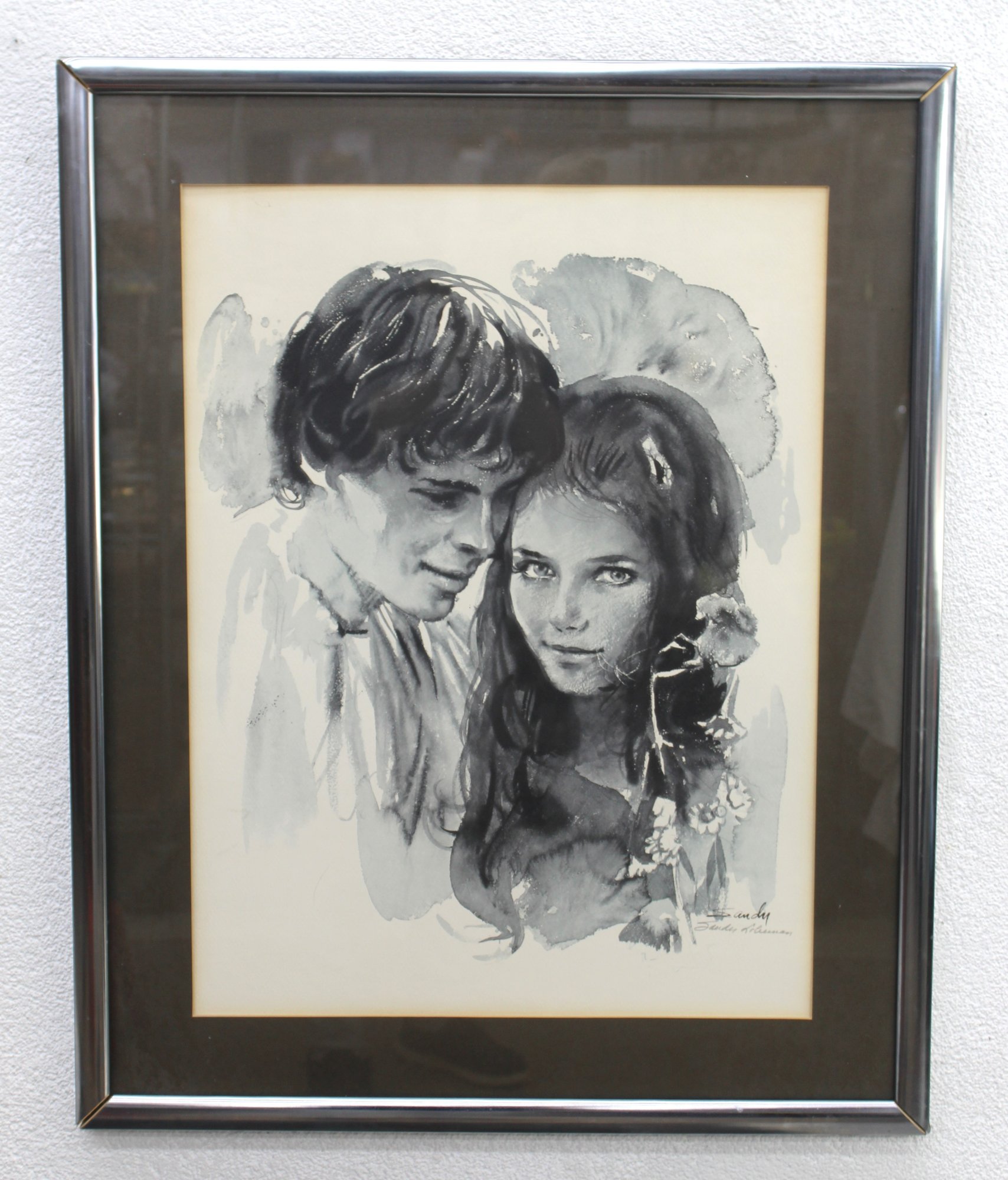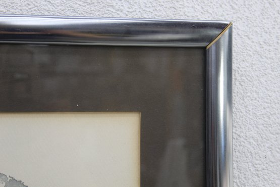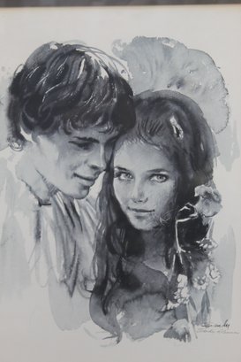 This is a stunning signed lithograph by the renowned artist Sandu Liberman. The artwork captures an intimate and emotional portrait in grayscale tones, showcasing Liberman's mastery in portraiture and expression. Signed in the lower right corner, this piece is a fine example of the artist's exceptional work. The lithograph is professionally matted and set in a sleek black and silver-tone frame, enhancing its elegance and ready for display.