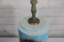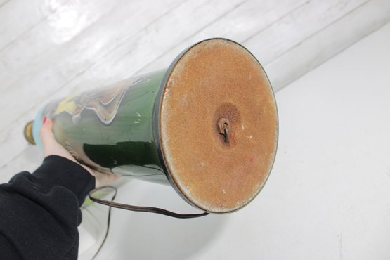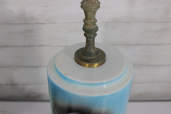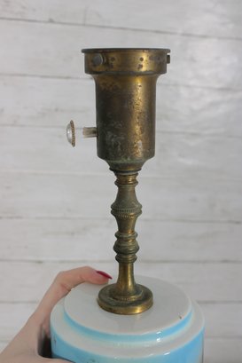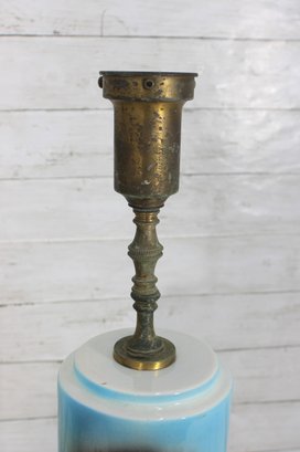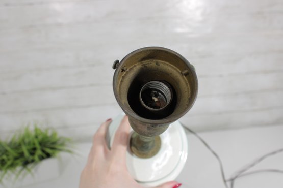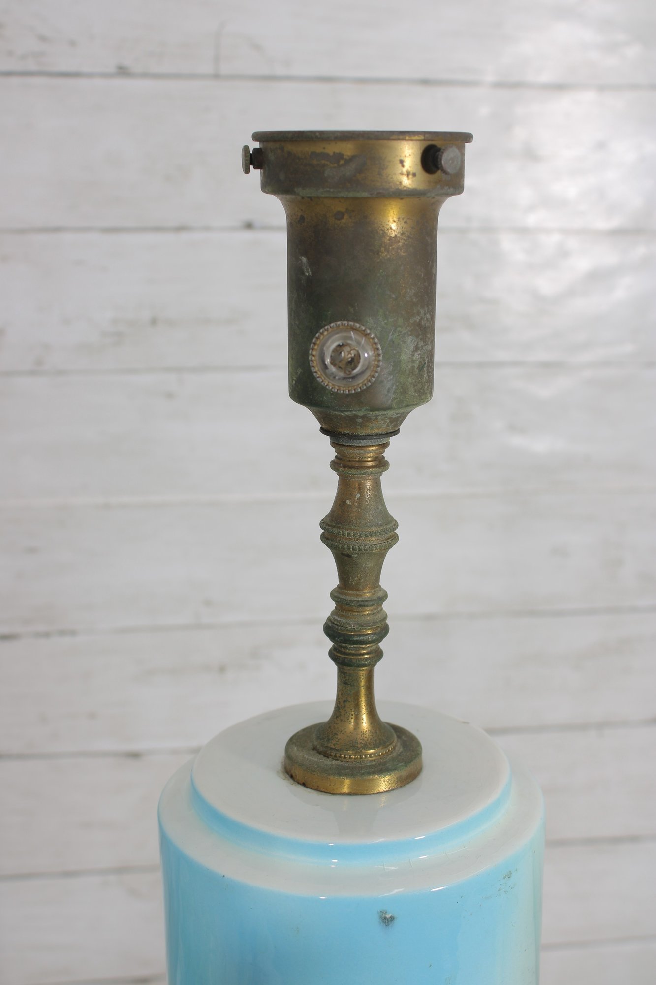 The lamp is topped with its original brass socket assembly, adding to its vintage character.