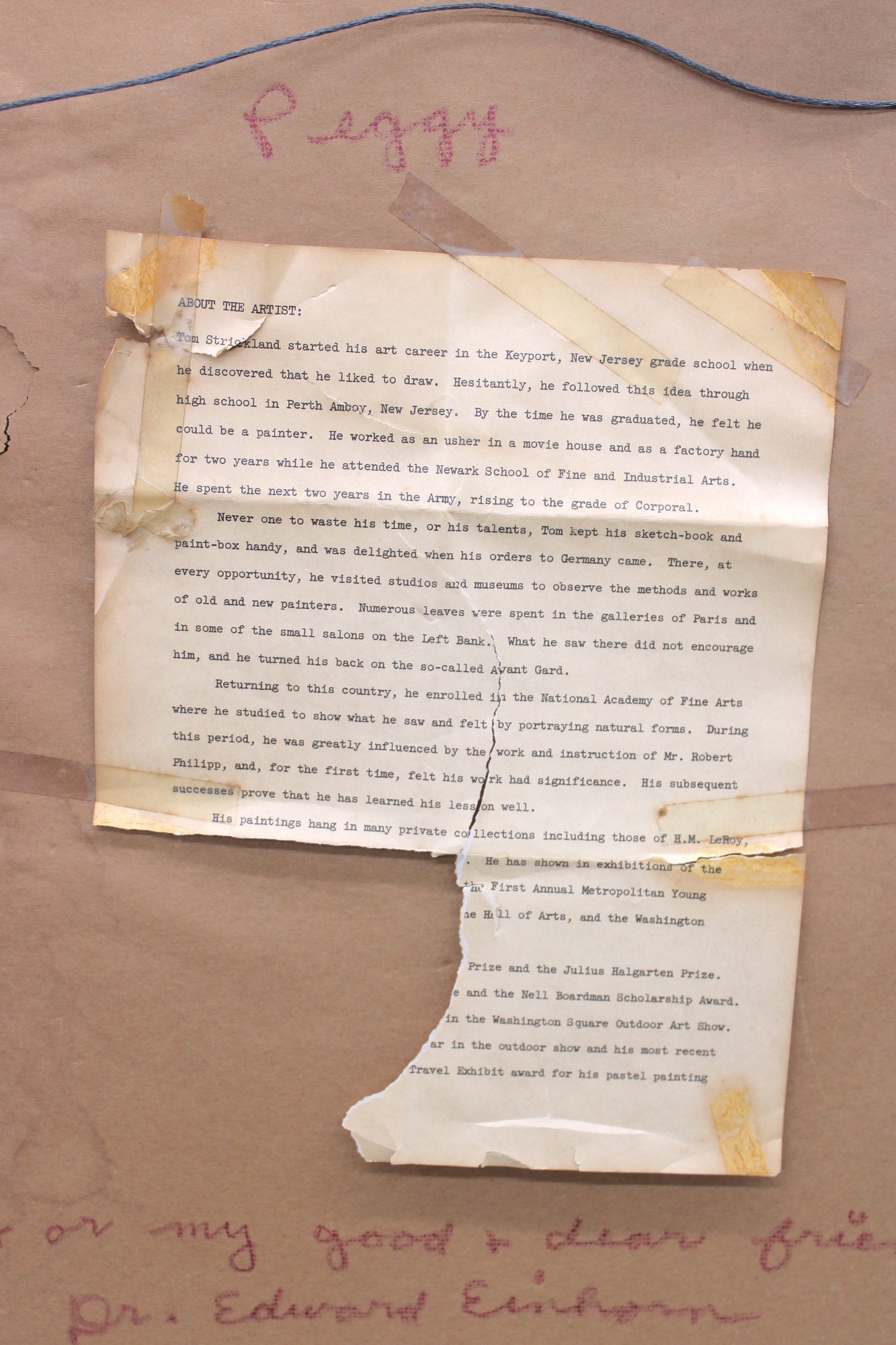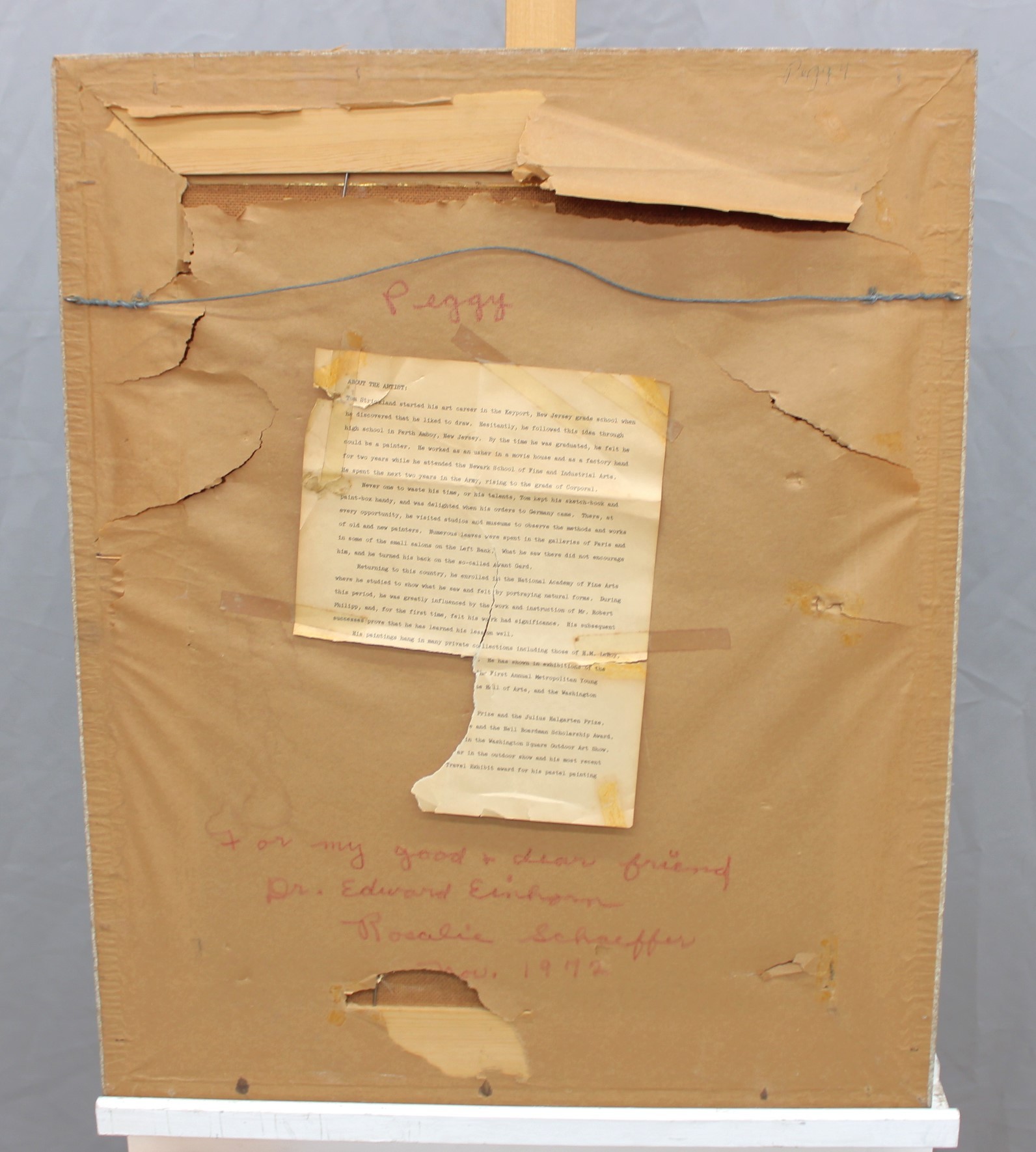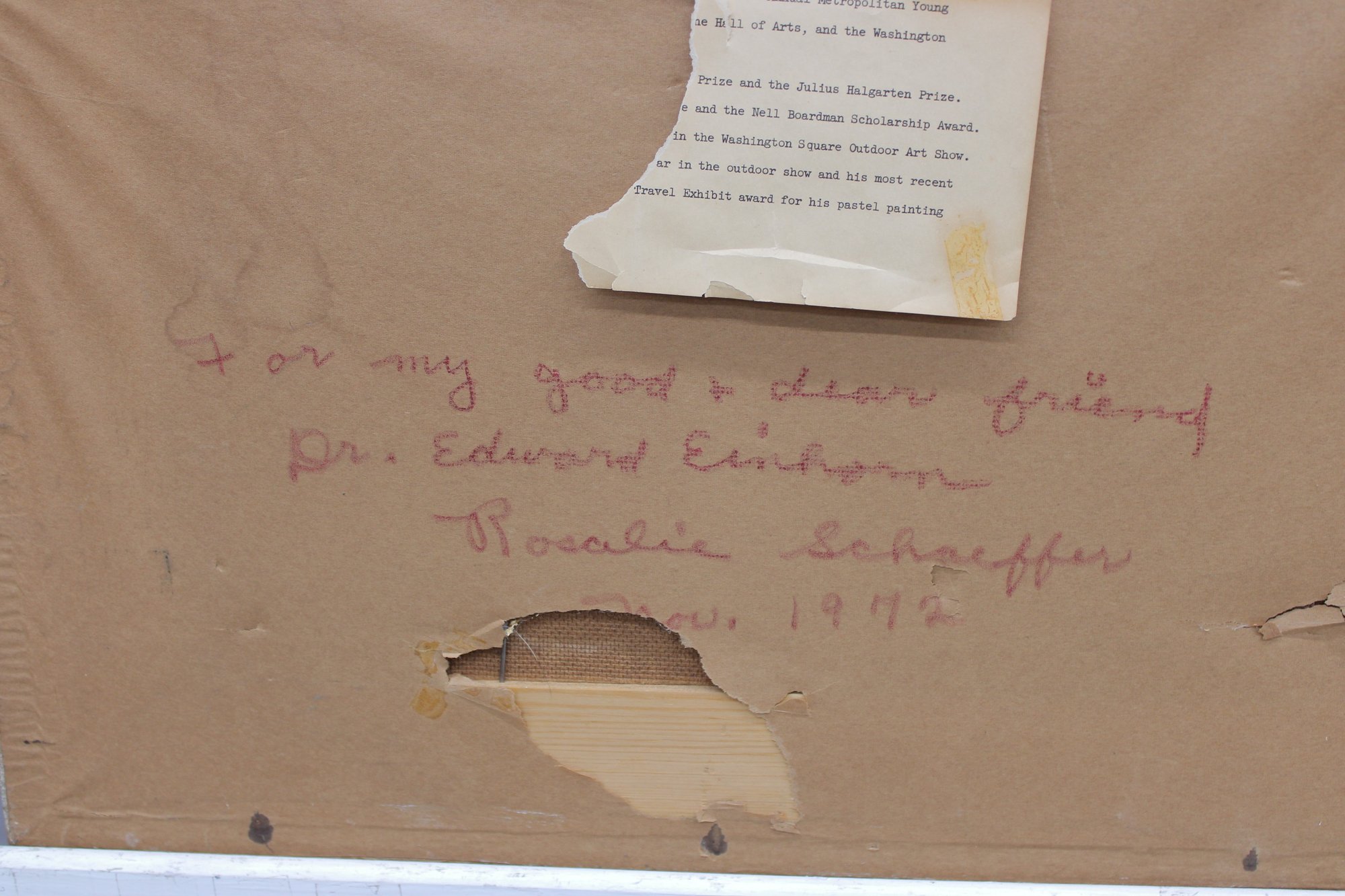 On the reverse, the work bears a handwritten dedication and date “1972,” along with a typed note affixed to the backing, providing additional historical context. These inscriptions are shown clearly in the photos and are included as part of the artwork’s provenance as found.
