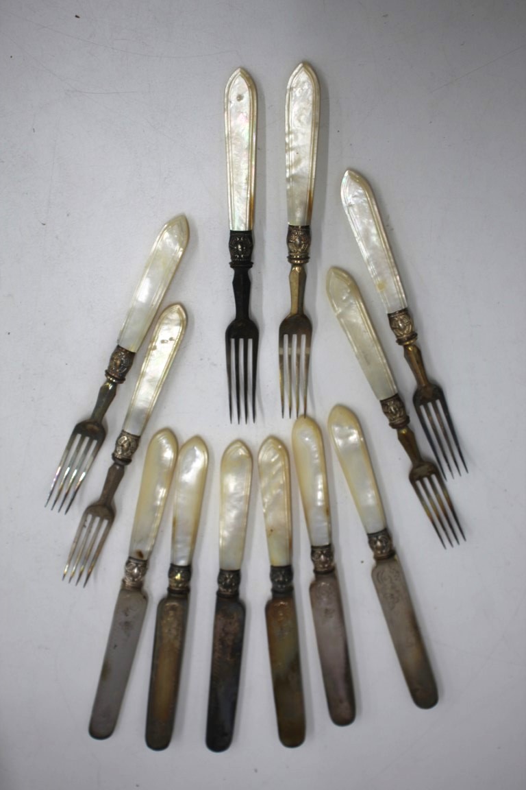 Silver Plate Mother Of Pearl Handled Fish Set (12pcs)