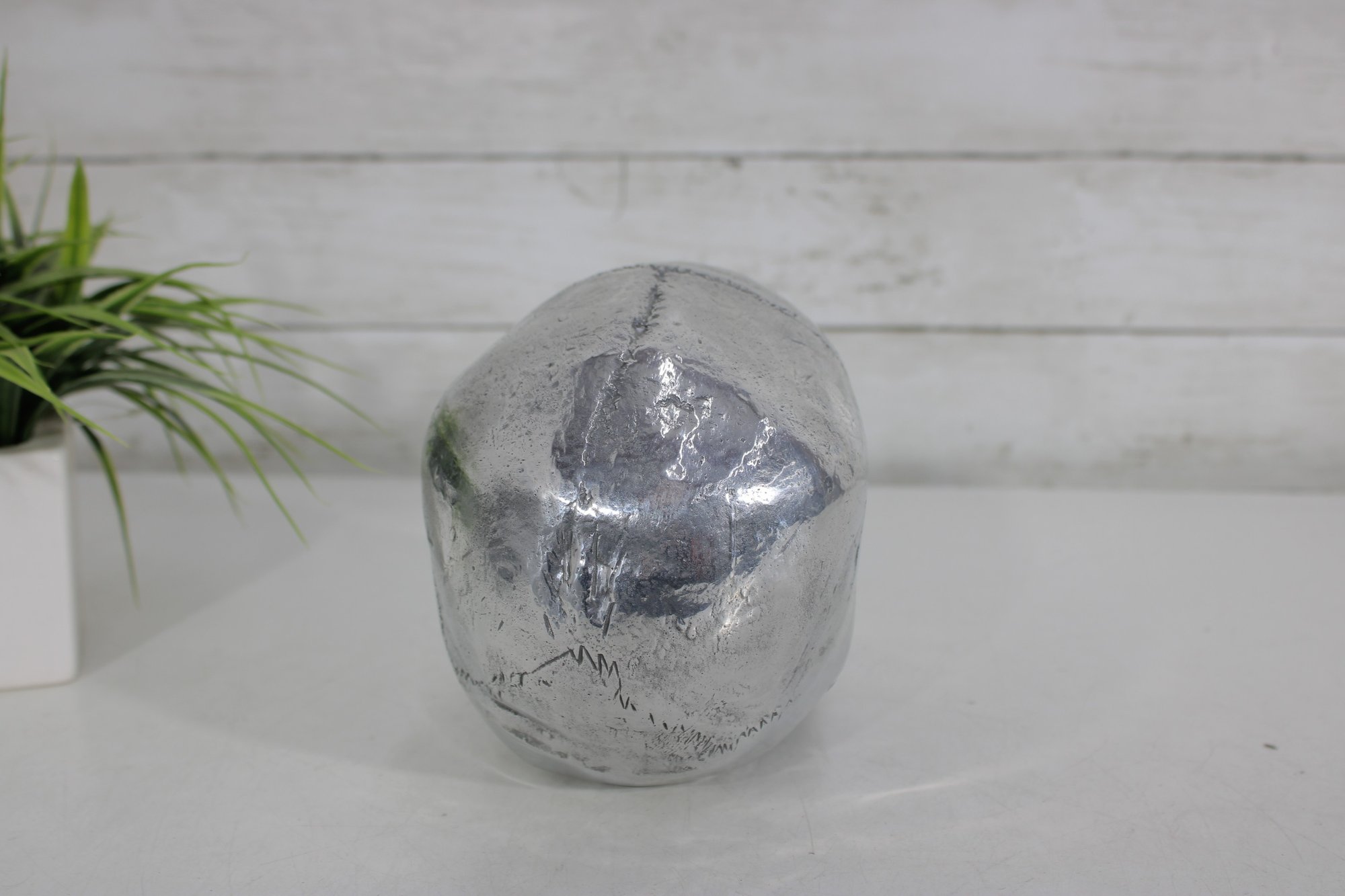 The interior cavity allows for small storage, making it ideal for use as a trinket box, stash container, or unique desk accessory. Its reflective finish adds modern edge while maintaining a classic skull motif.