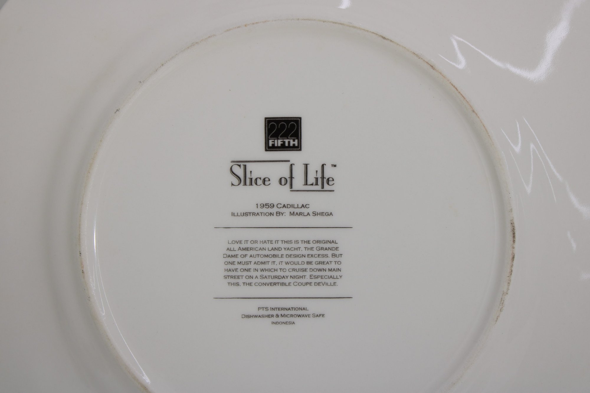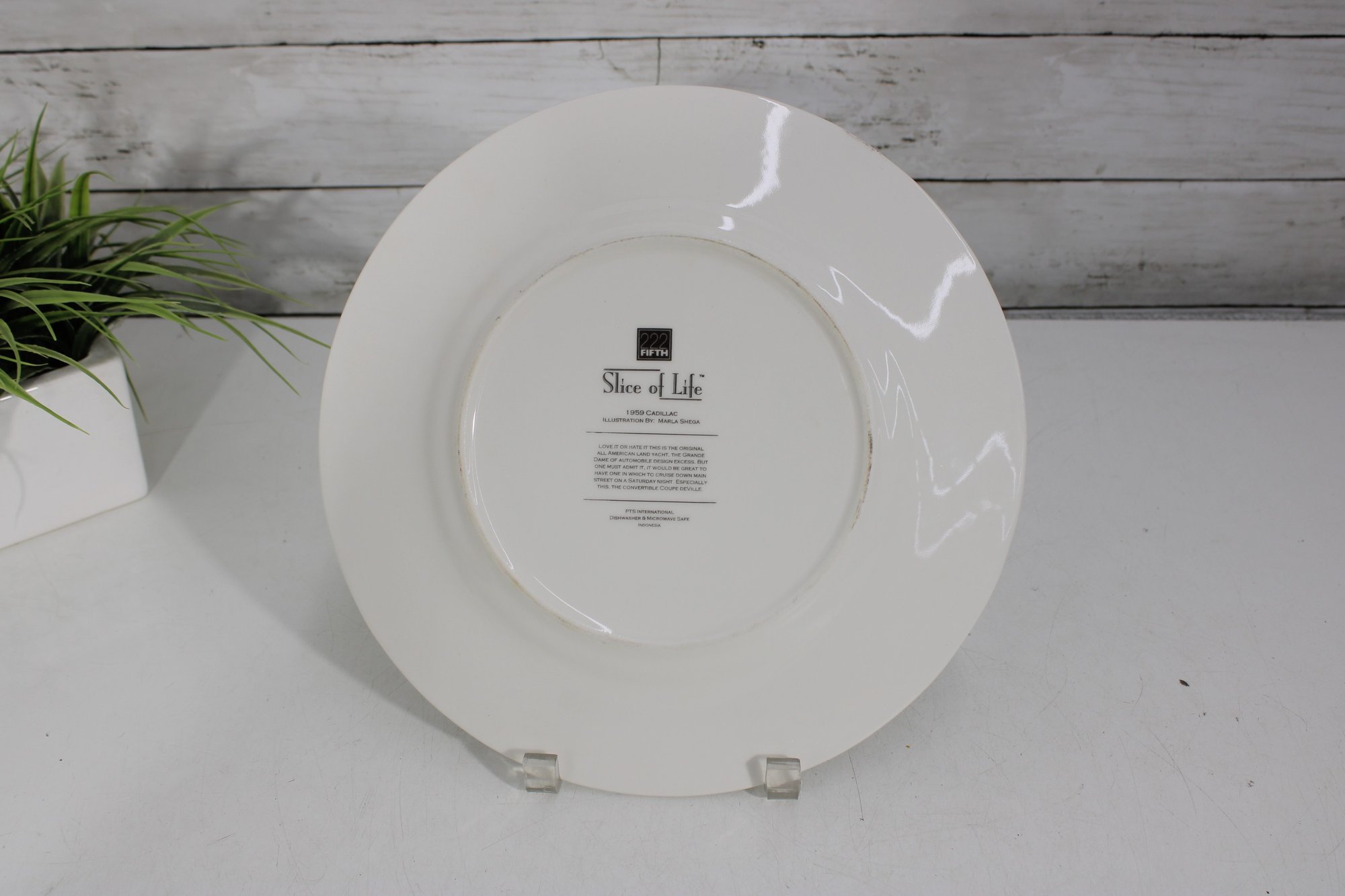 According to the backstamp, this plate was produced by 222 Fifth and is part of the Slice of Life series. Designed as a decorative display piece, it works well for wall mounting, shelf display, or as part of an automotive or graphic art collection.