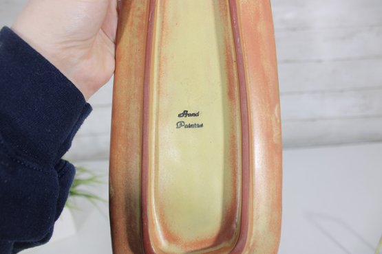 The design reflects classic mid-century African studio pottery aesthetics, with bold lines and geometric accents. The reverse shows an impressed “Hand Painted” marking, and while unmarked for a specific maker, the style strongly resembles pieces attributed to Dykor Ceramic Studio.