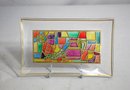The tray features a vibrant mosaic design with colorful stained glass panels, framed in gold accents, creating a stunning and eye-catching piece.