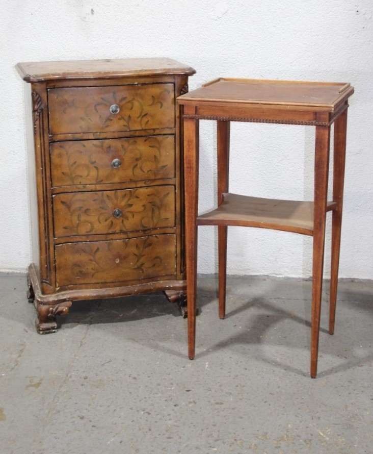 Stencil Pained Bow Front 3 Drawer Bedside Chest And Mahogany Two Tier Small Side Table
