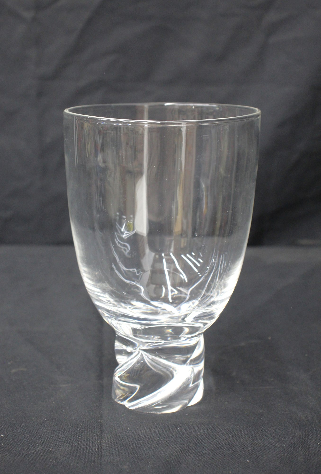 Steuben Signed Footed Vase stands at 8.5 inches tall and exemplifies the renowned craftsmanship and timeless beauty of Steuben glass. The vase features a classic design with a sturdy, beautifully twisted foot that adds a touch of sophistication and stability.
