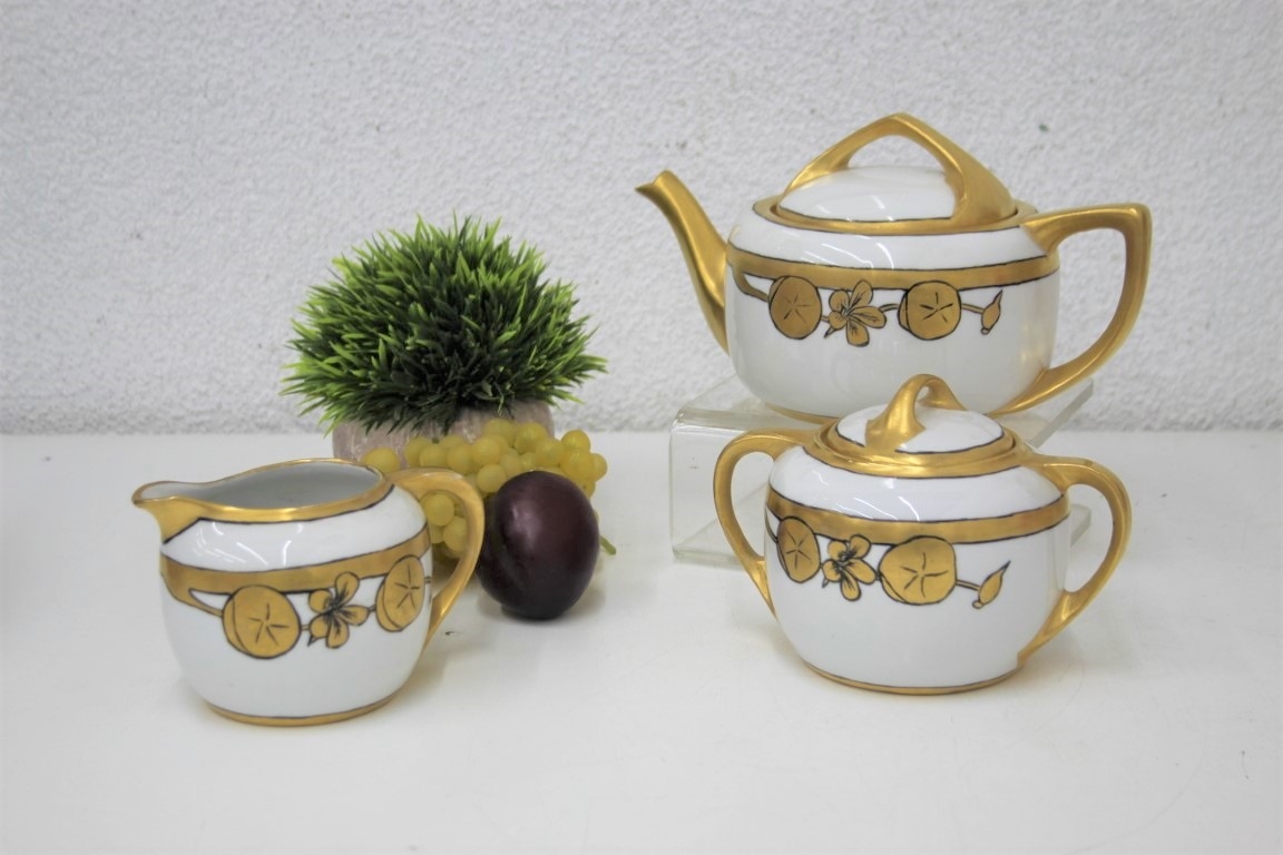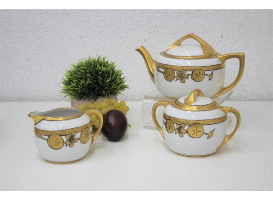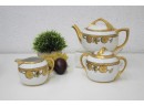 Striking Lotus Root And Flower Gold Painted Porcelain Teapot , Creamer And Sugar