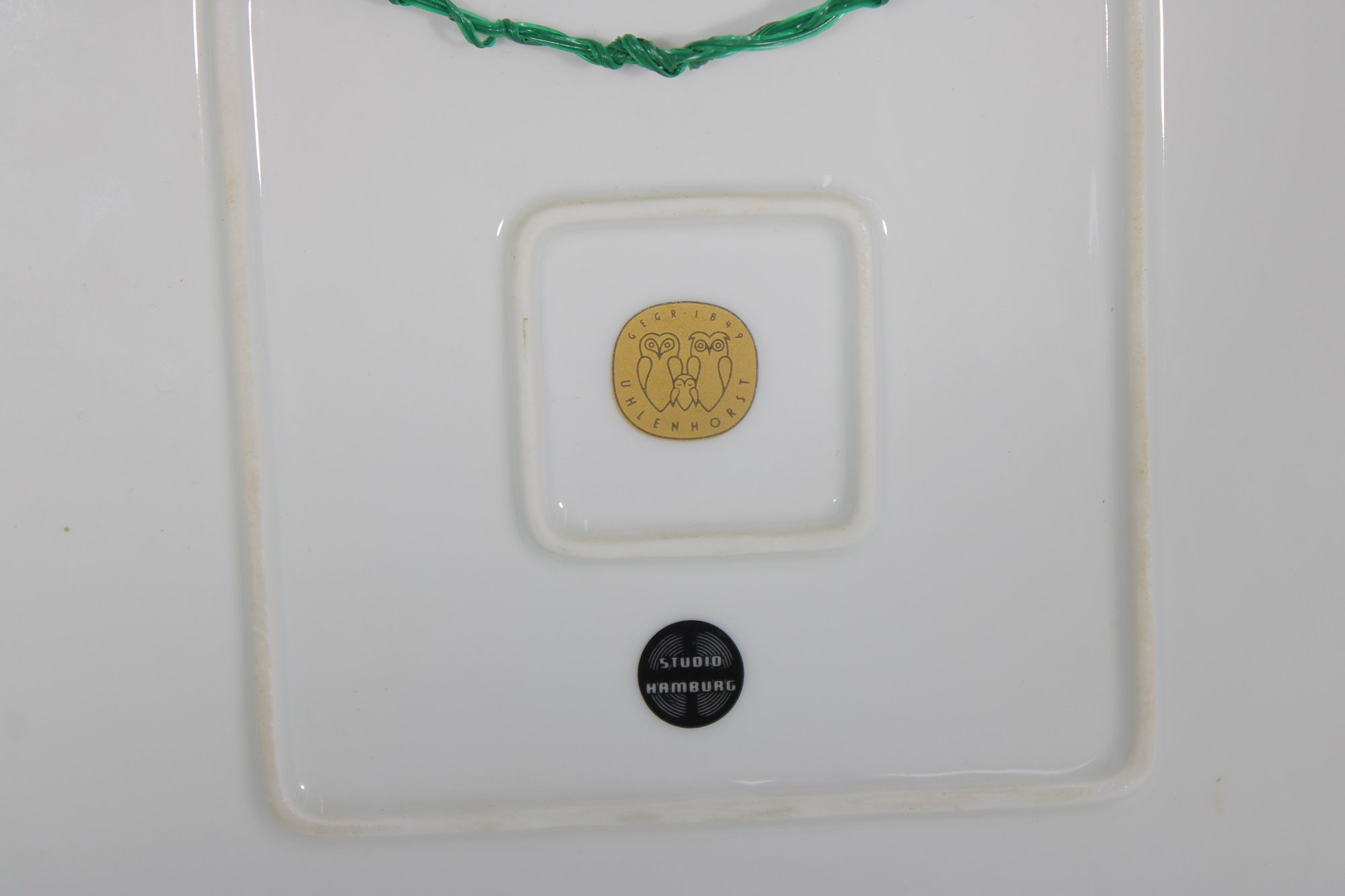 Measuring approximately 10” x 10”, this piece is ideal for display as wall décor or as part of a collector’s set. The reverse includes Studio Hamburg markings and retains original labels, and it is fitted with a hanger for easy wall mounting.
