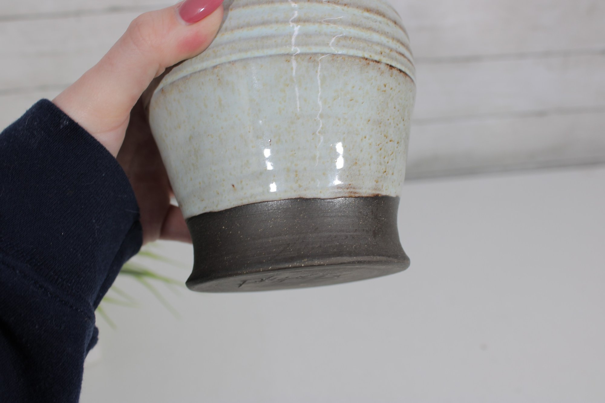The underside appears unmarked or with an indistinct maker’s mark, typical of studio pottery pieces.