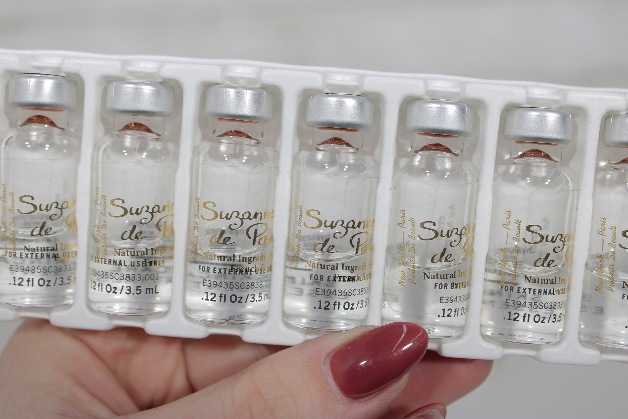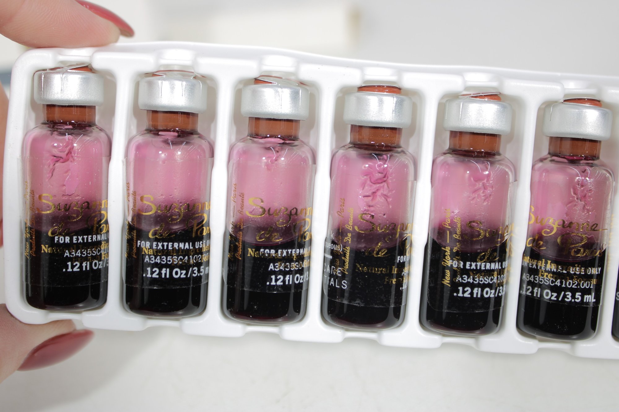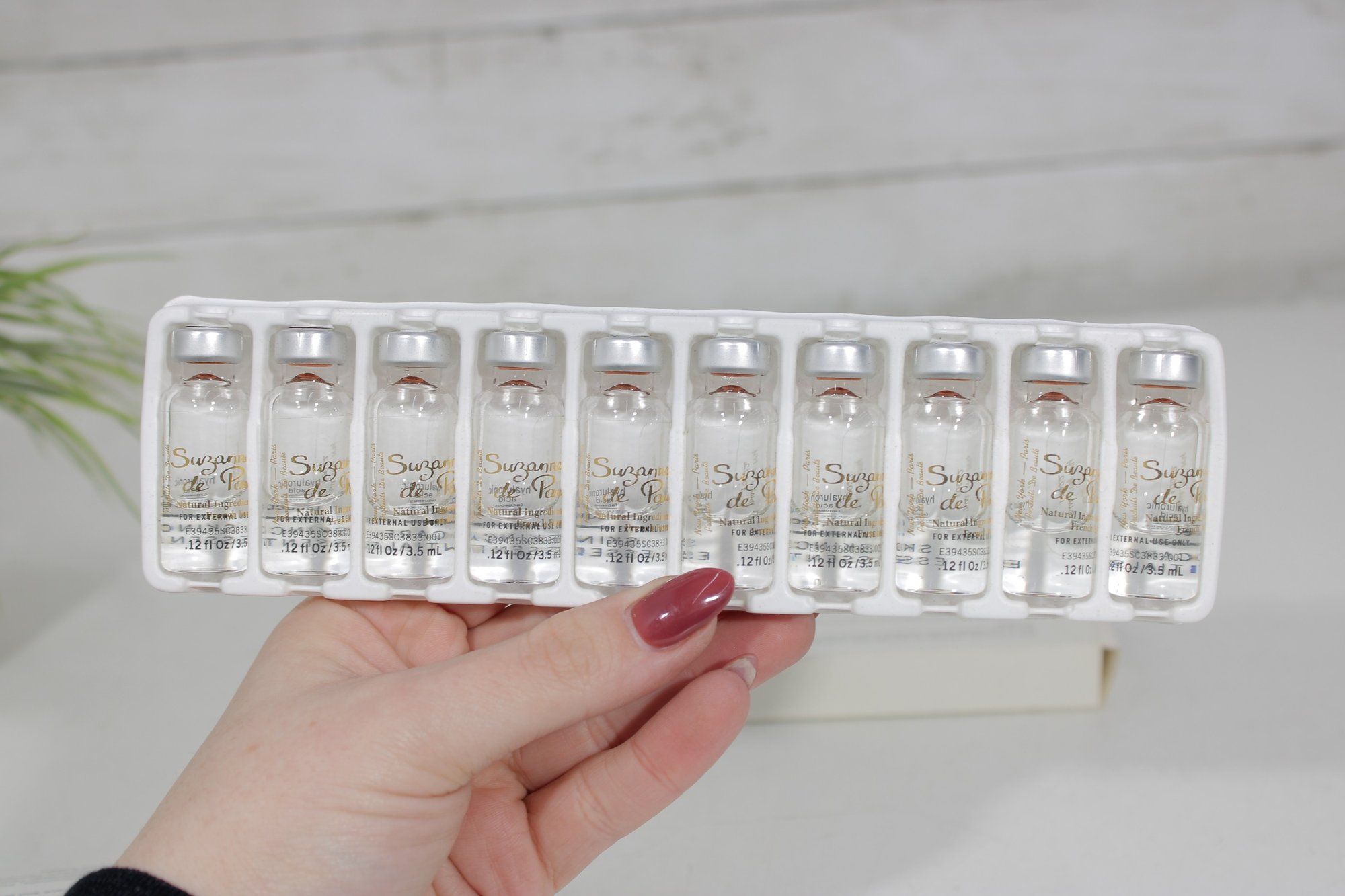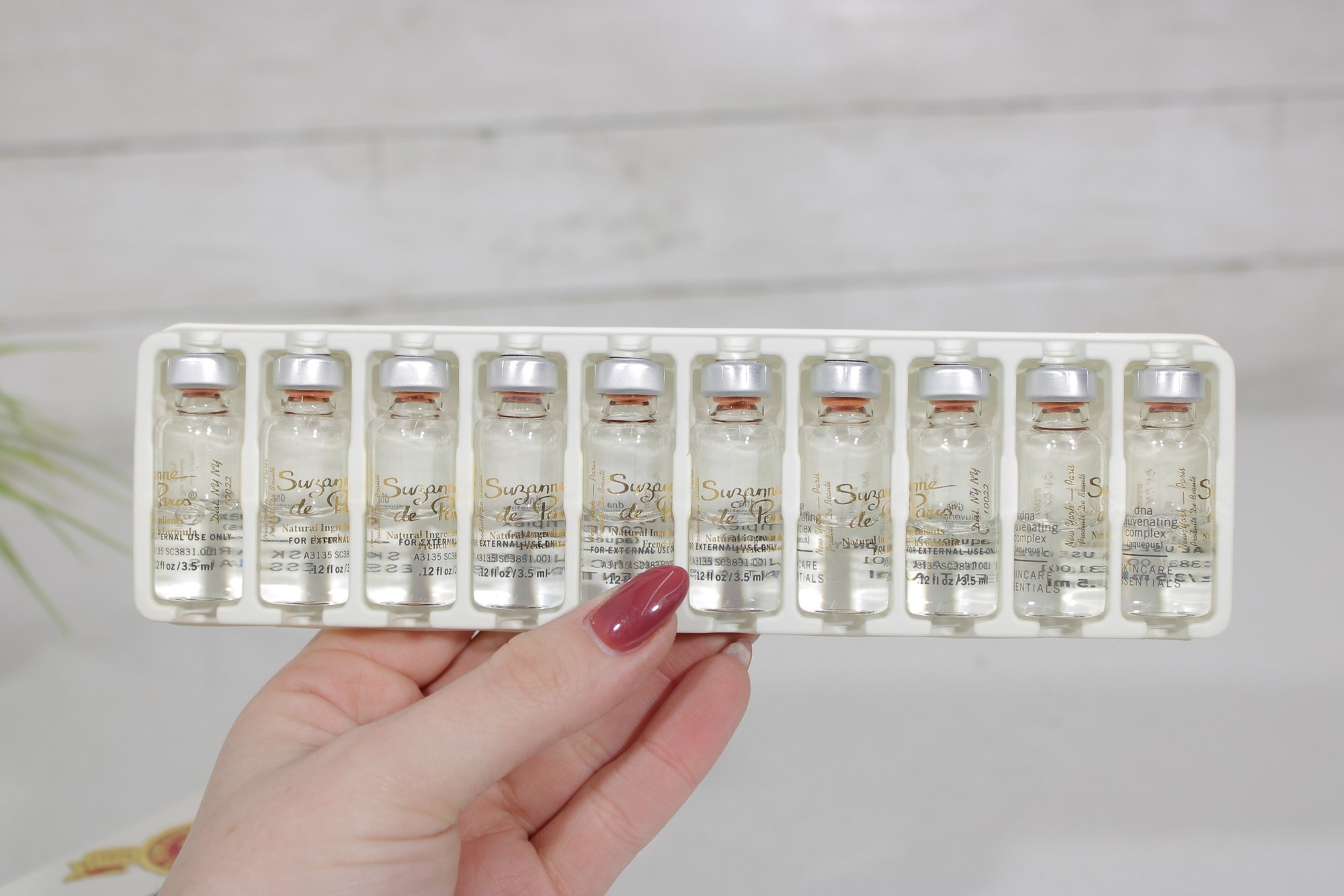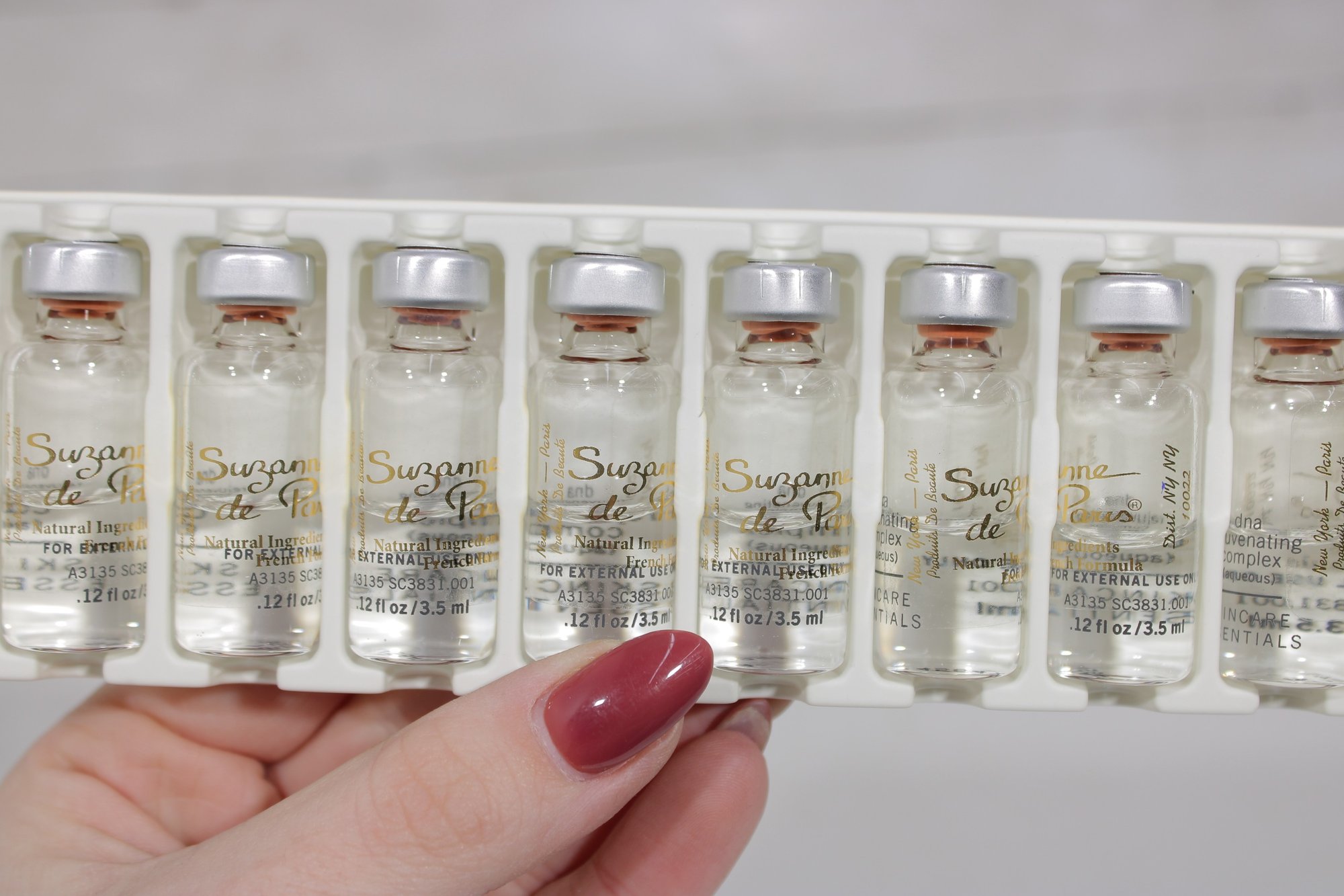 Each box is labeled Professional Use Only and contains 10 vials, with each vial measuring 0.12 fl oz / 3.5 ml. These treatments are identified as DNA treatment (aqueous) and hyaluronic acid (aqueous) formulations.