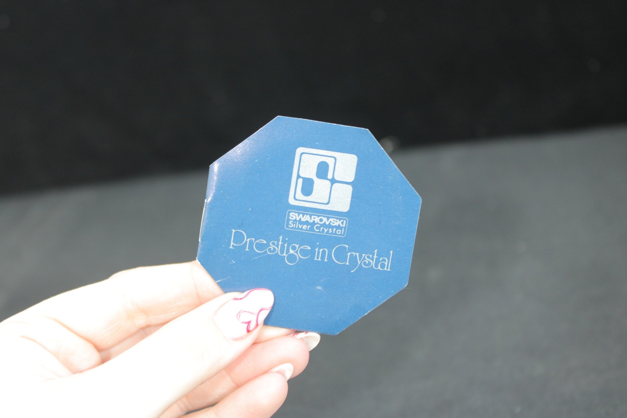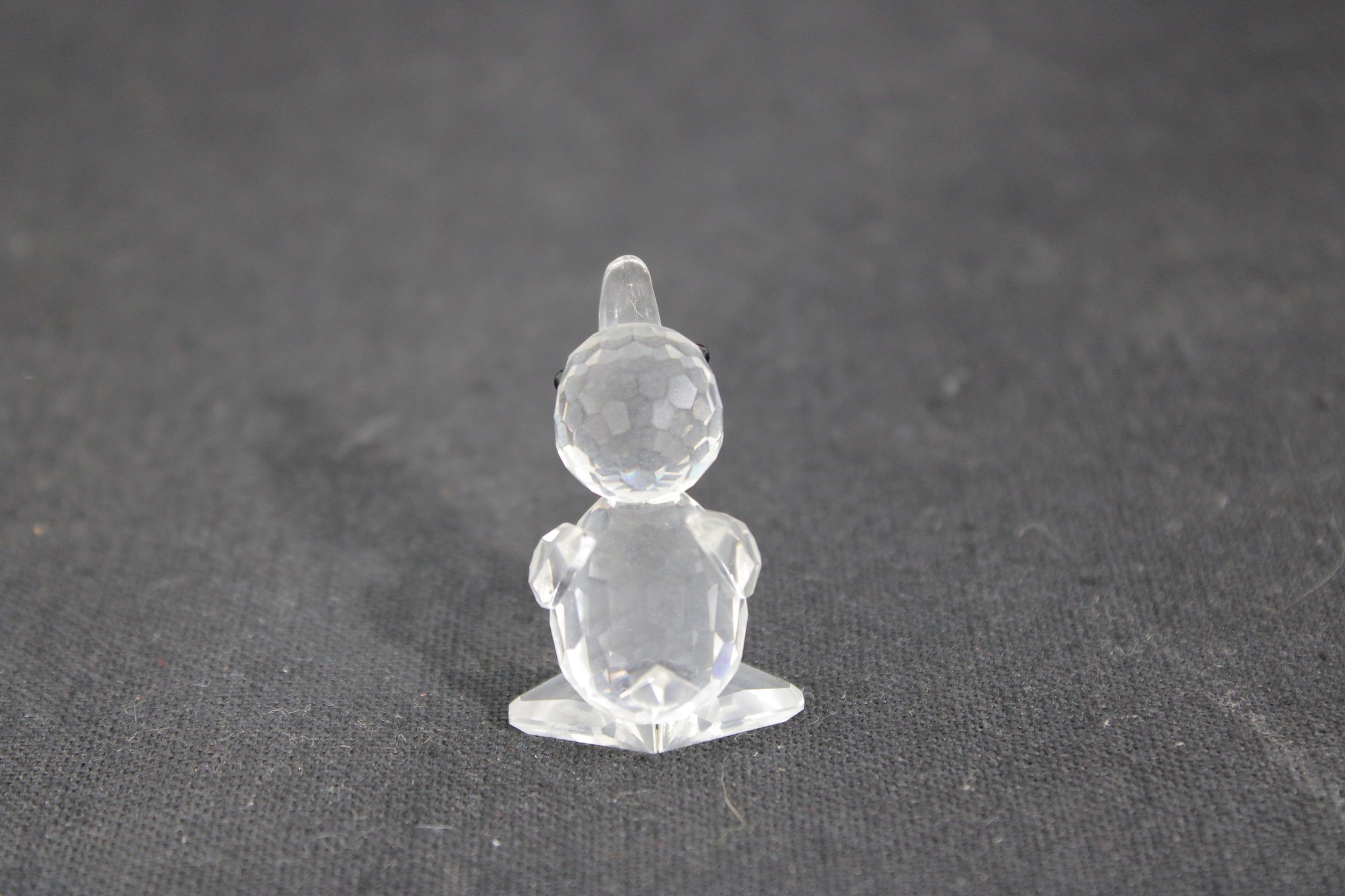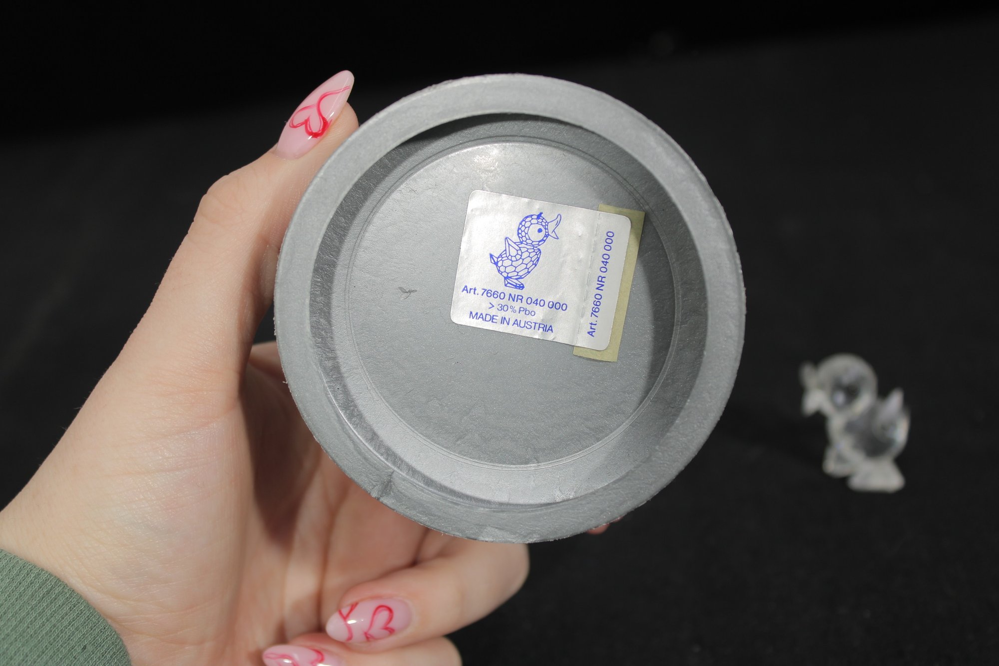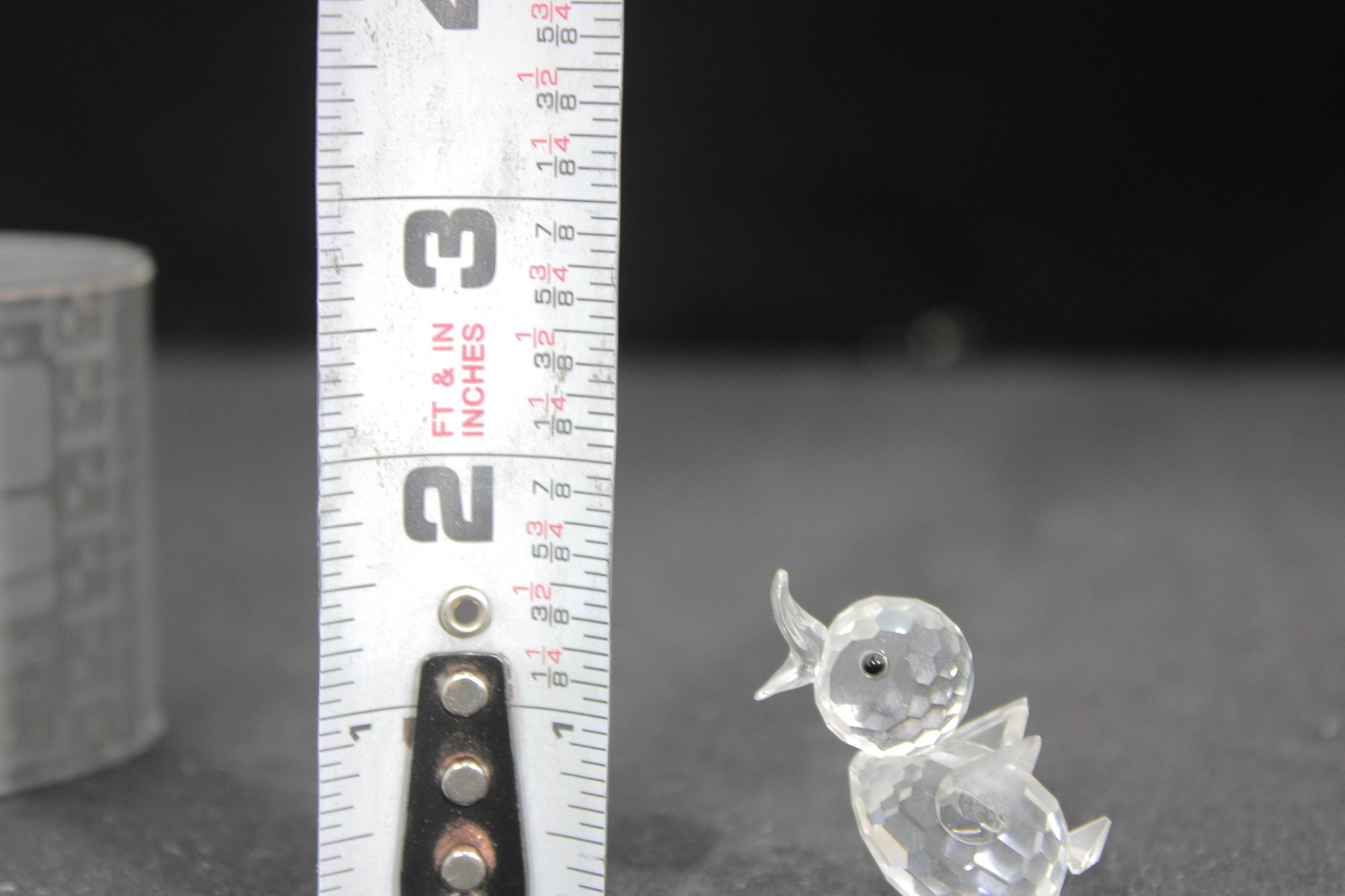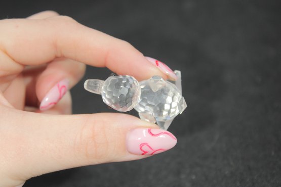 Adorable Swarovski crystal duck figurine, crafted in beautifully faceted clear crystal that reflects light with signature Swarovski brilliance. This charming little bird features a rounded body, raised wing detail, and sweet expression, making it a standout miniature collectible.