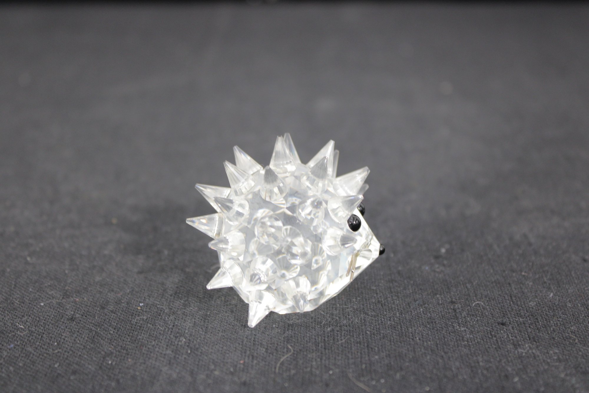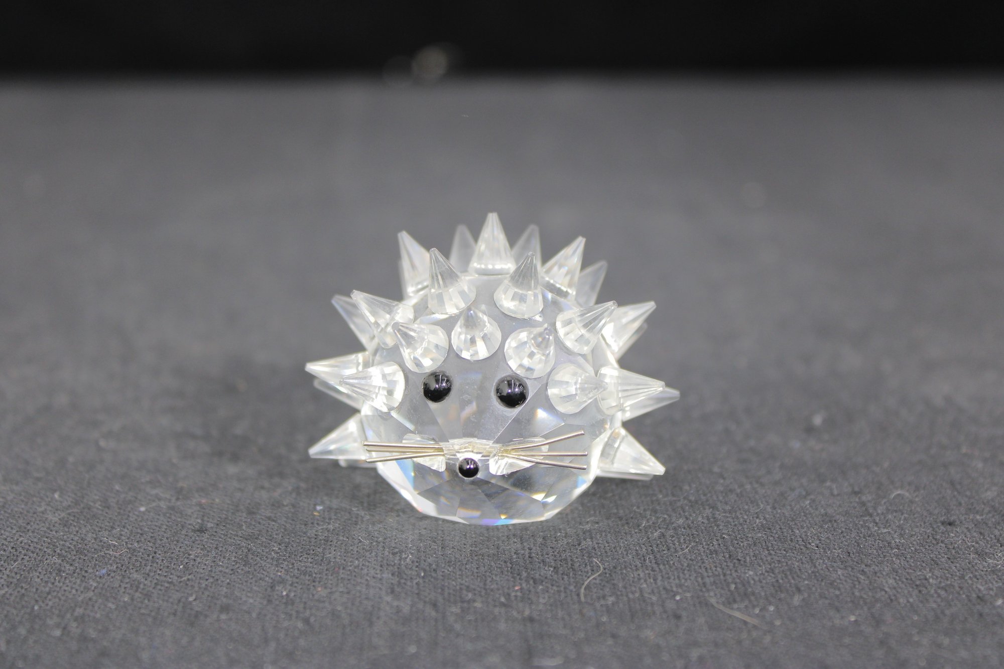 Adorable Swarovski crystal hedgehog figurine, crafted in sparkling clear faceted crystal with detailed pointed “spines” that catch the light beautifully. The sweet face and compact shape make this a standout miniature collectible.