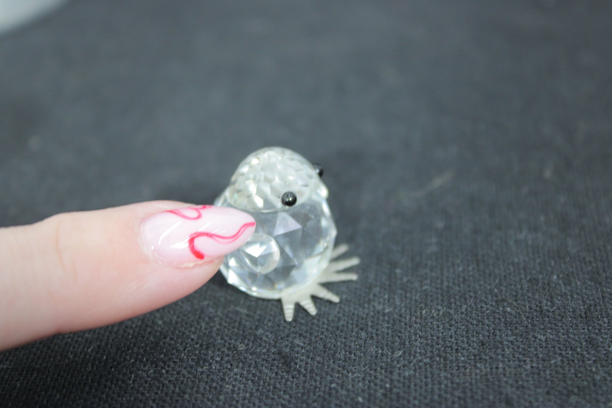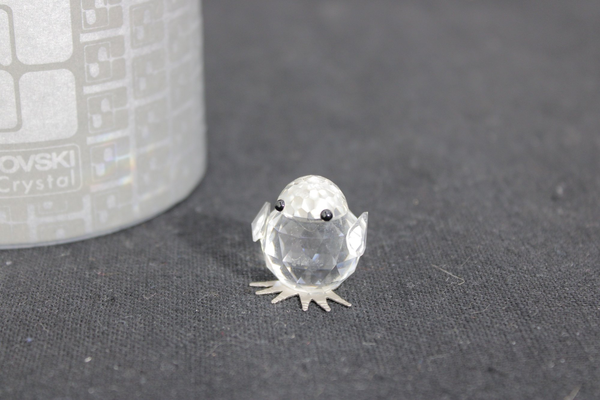 Charming Swarovski crystal mini chick figurine, beautifully crafted with the brand’s signature precision-cut facets that sparkle from every angle. This adorable tiny bird makes a perfect addition to any Swarovski collection, animal figurine display, or gift for a crystal lover.