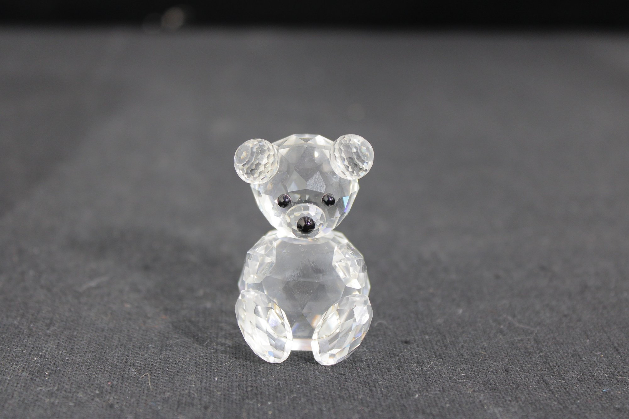 Sweet and timeless Swarovski crystal teddy bear figurine, crafted in beautifully faceted clear crystal that sparkles with the brand’s signature brilliance. The rounded ears, seated pose, and polished features give this little bear a charming, classic look.