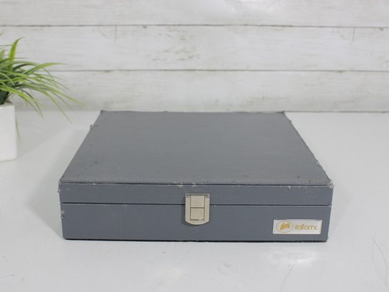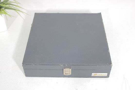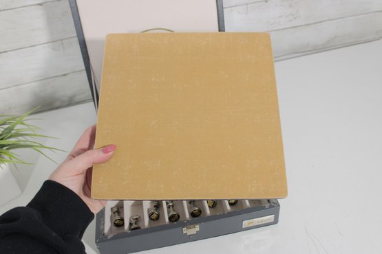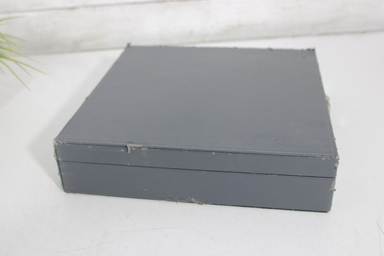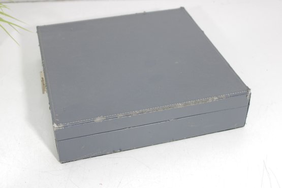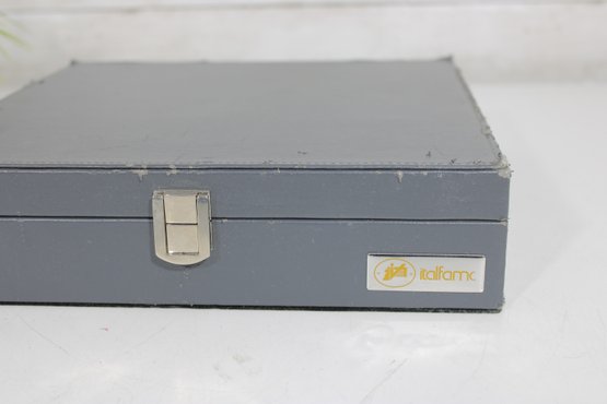 The interior is neatly organized with individual compartments to protect each piece, and the case closes securely with a latch for convenient storage and transport.